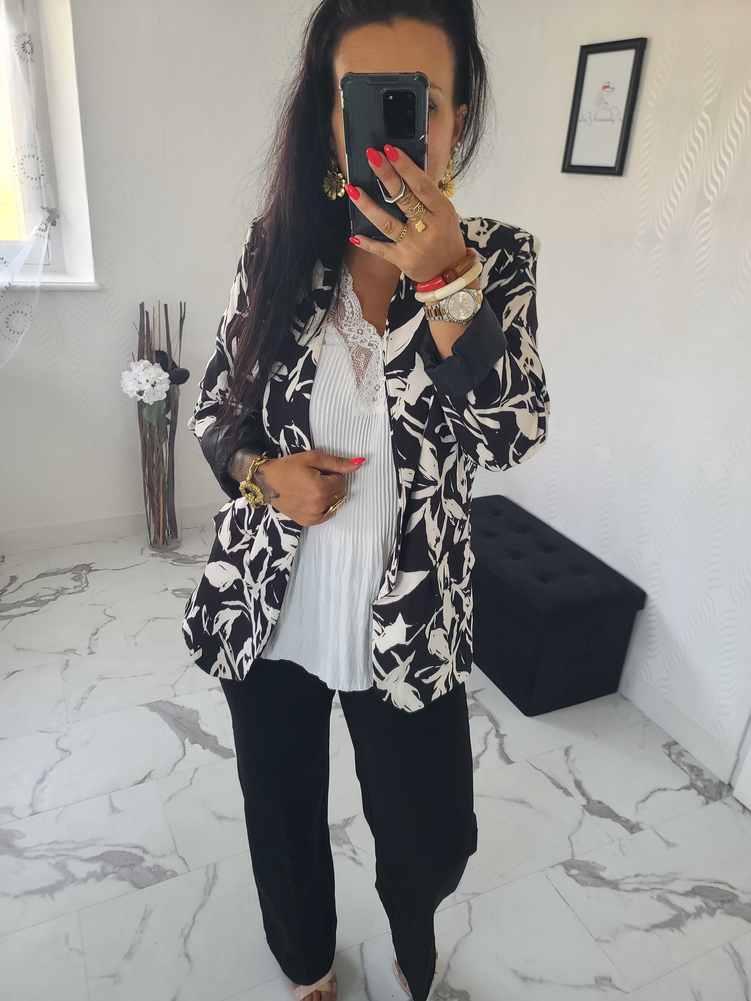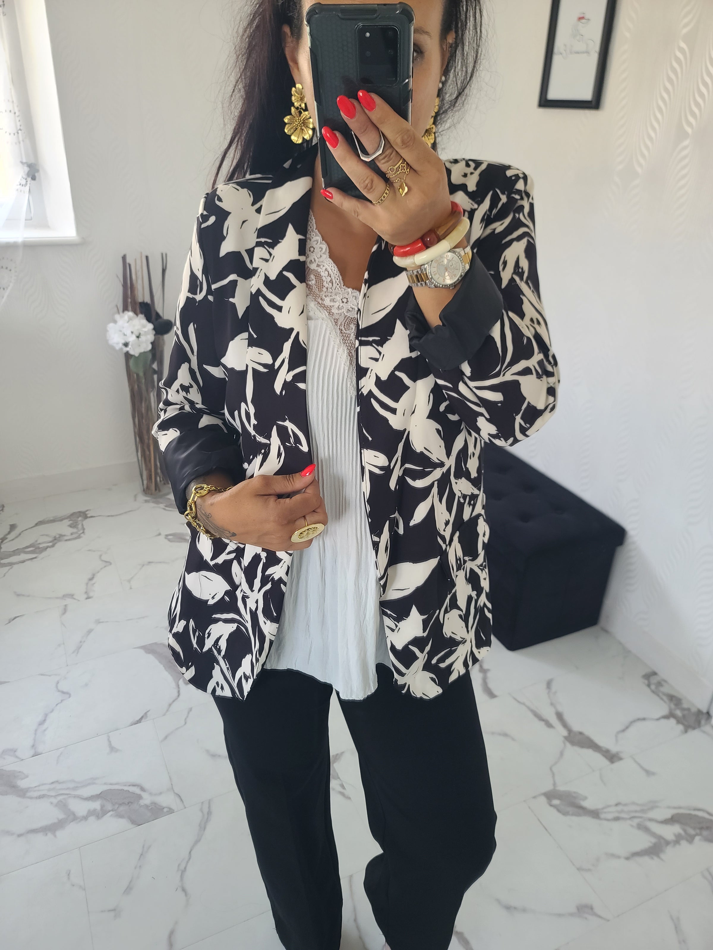 Blazer imprimé Théa, la taille unique convient du 36 au 42.
