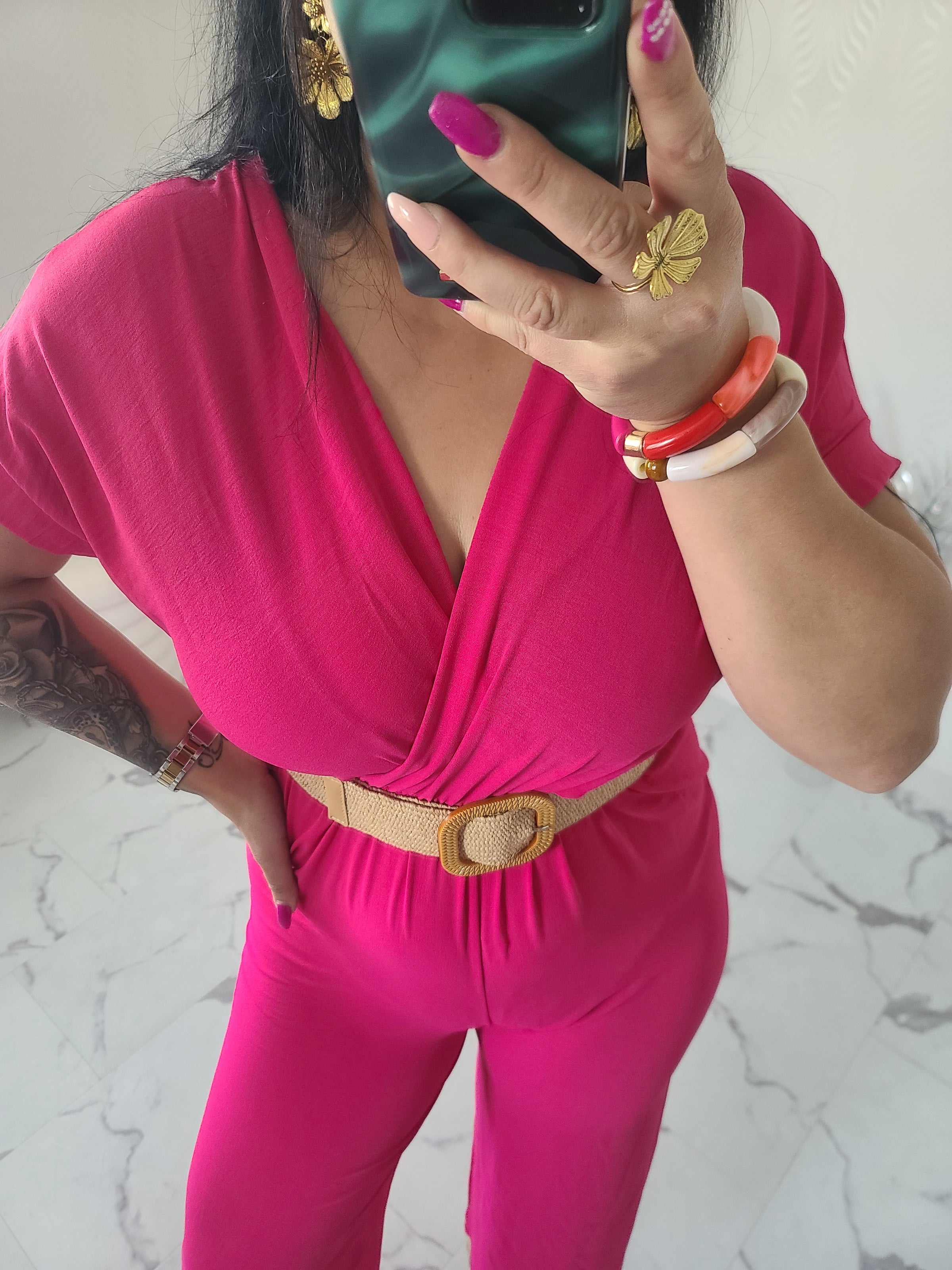 La Combinaison Tess est un indispensable pour toute garde-robe. Avec son col V flatteur et sa ceinture, cette combi-pantalon noire est à la fois élégante et confortable. Parfaite pour toutes les occasions, elle vous rendra irrésistible tout en vous assurant un confort optimal. La taille unique convient du 36 au 44.