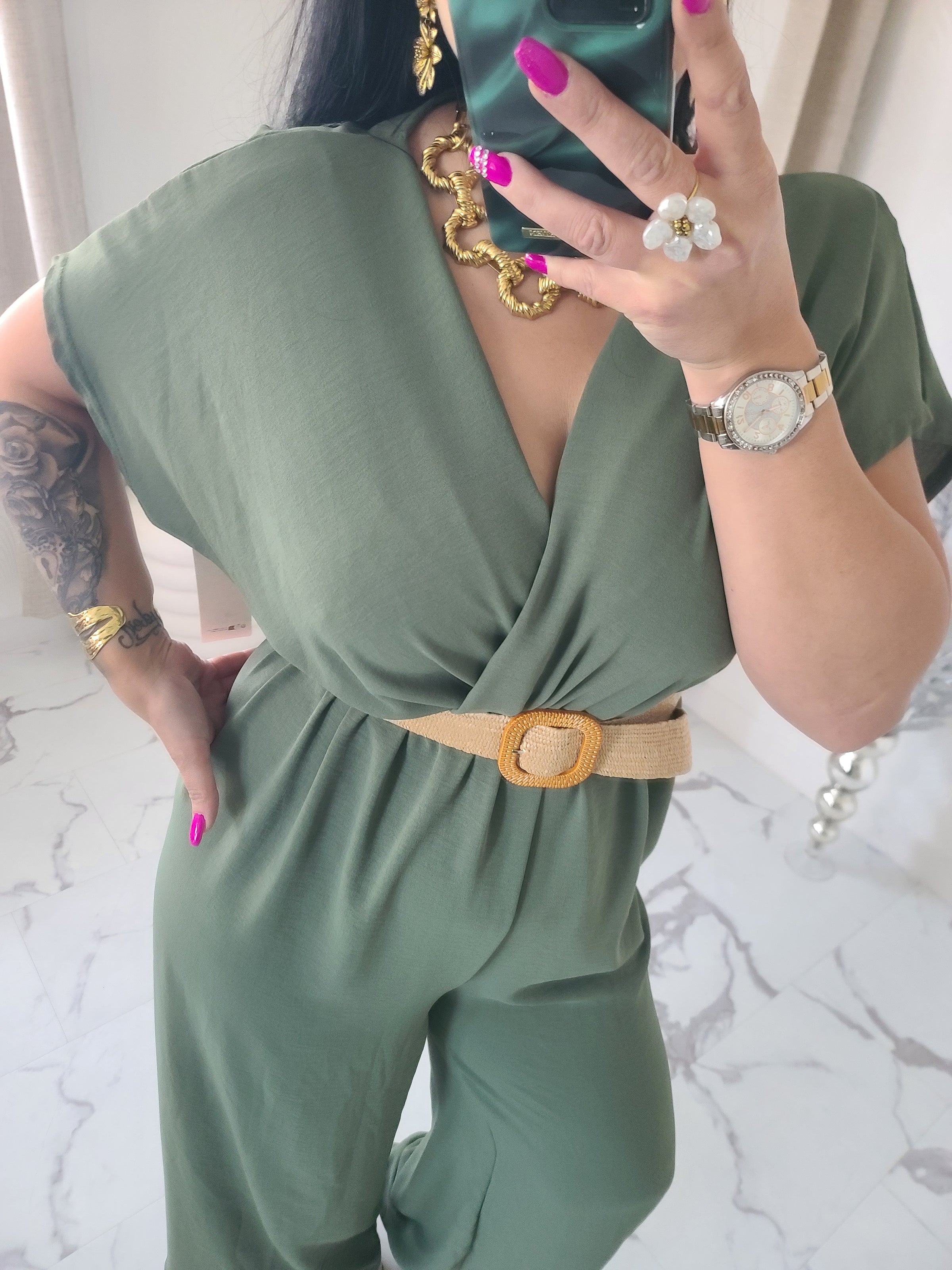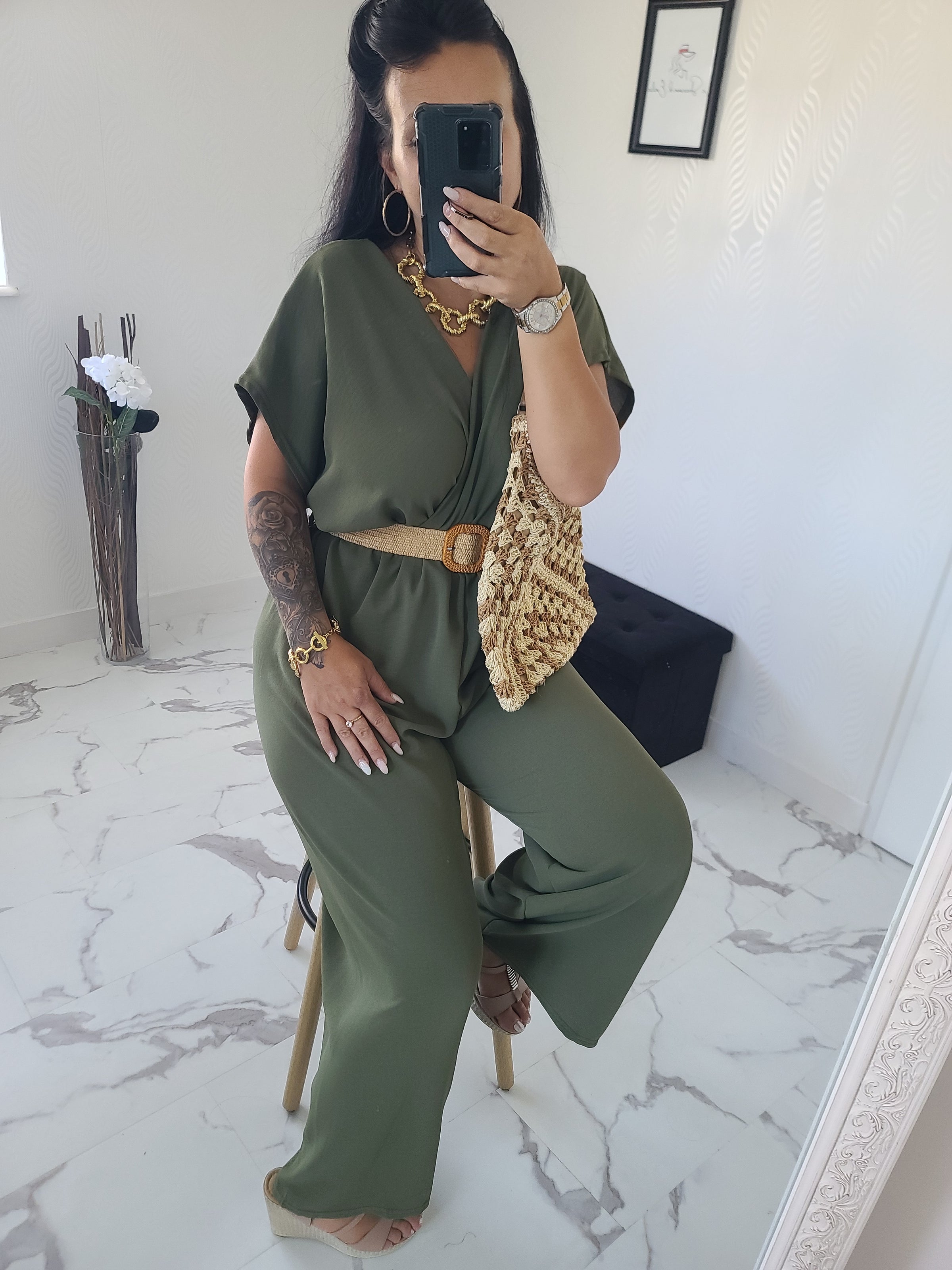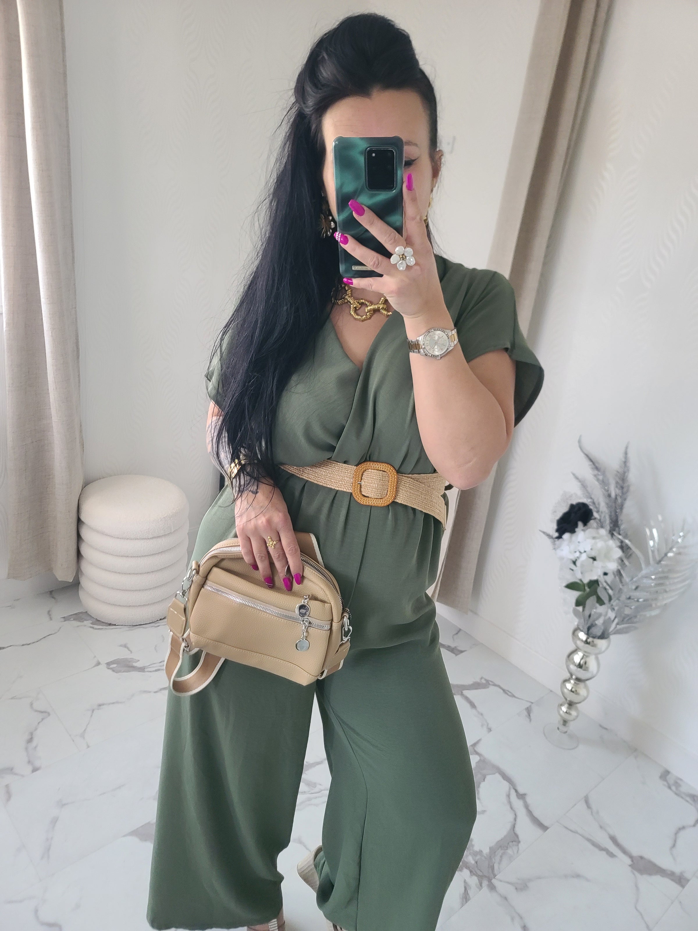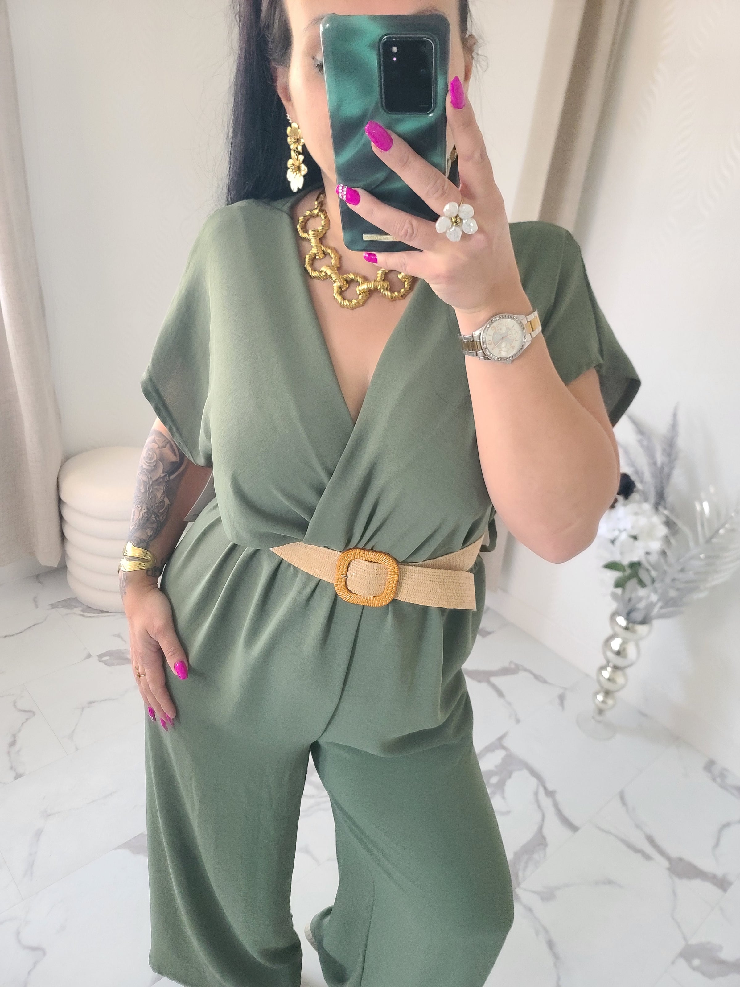 La Combinaison Tess est un indispensable pour toute garde-robe. Avec son col V flatteur et sa ceinture, cette combi-pantalon est à la fois élégante et confortable. Parfaite pour toutes les occasions, elle vous rendra irrésistible tout en vous assurant un confort optimal. La taille unique convient du 36 au 48.