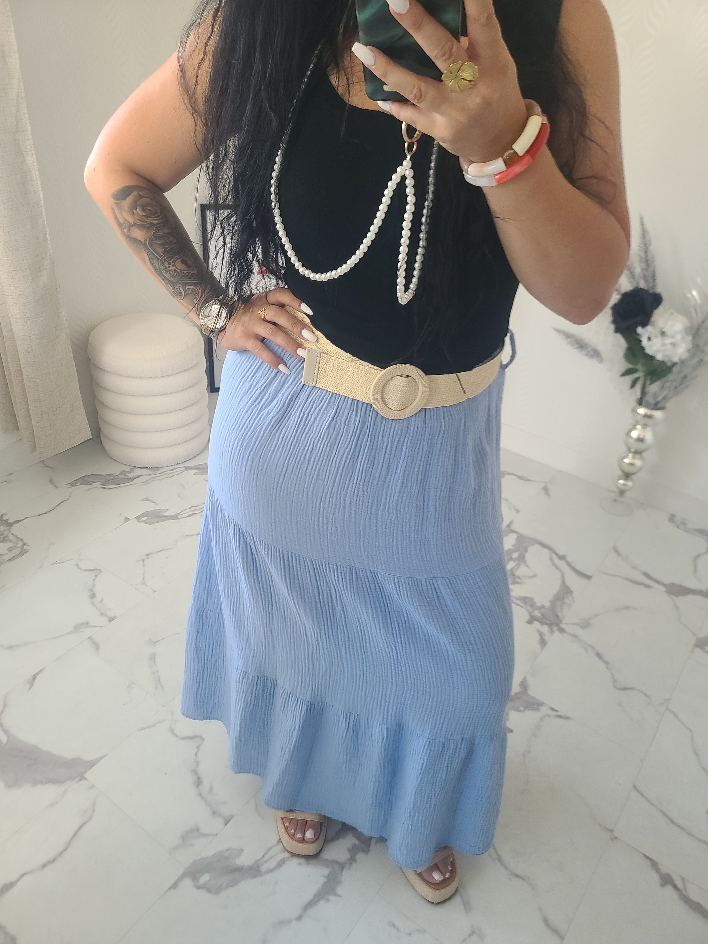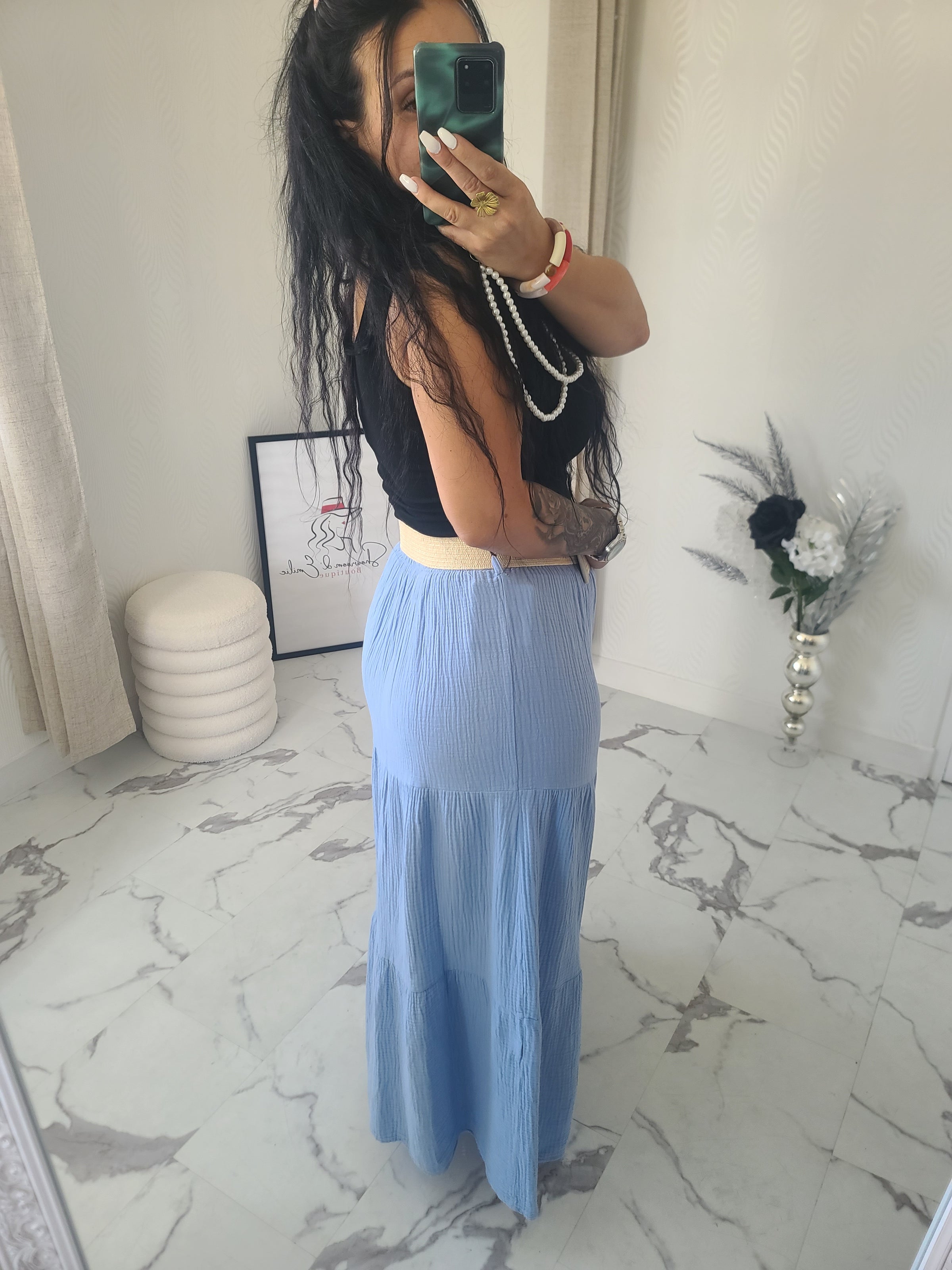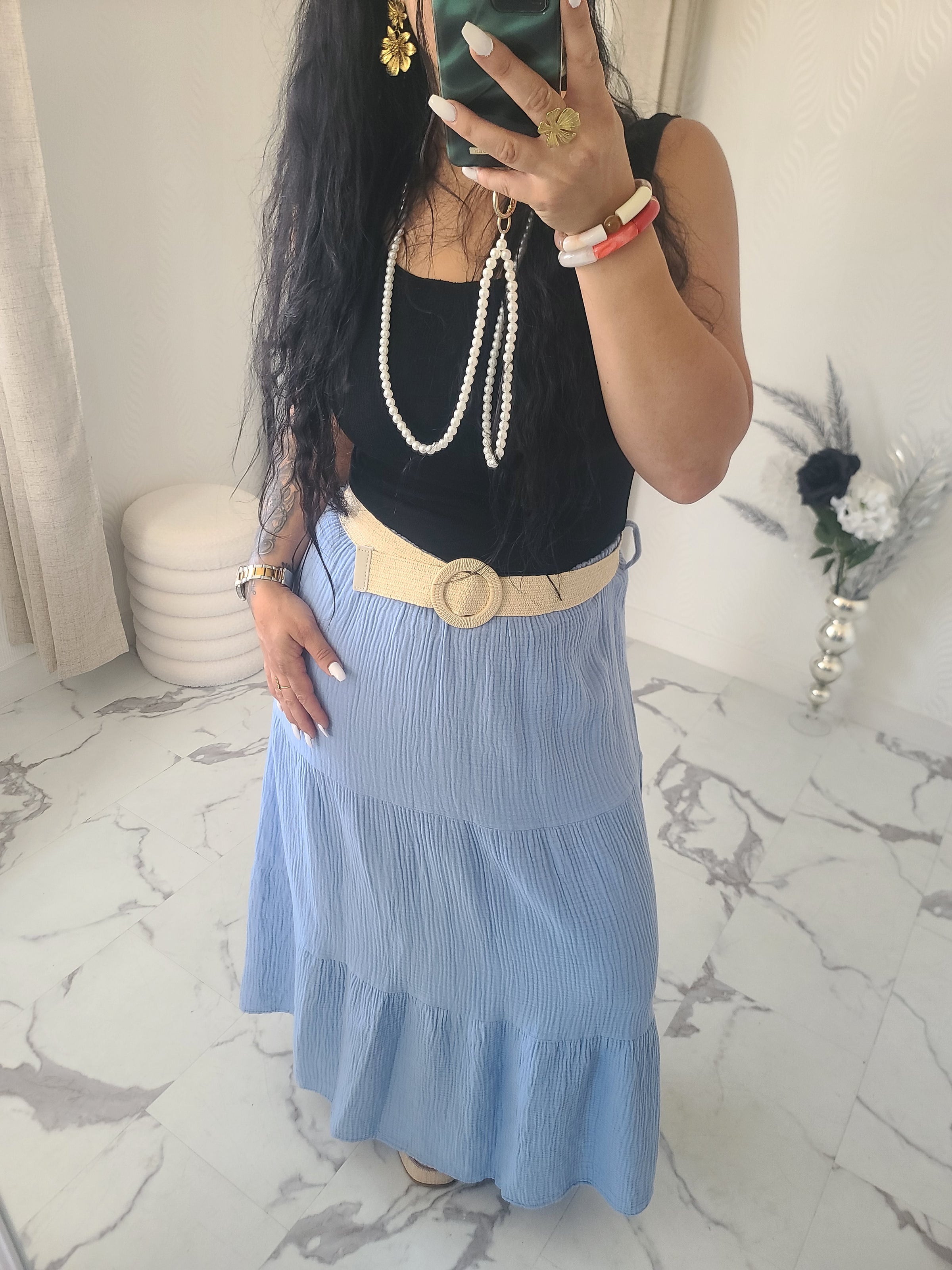 Jupe longue en gaze de coton, vendue avec la ceinture!