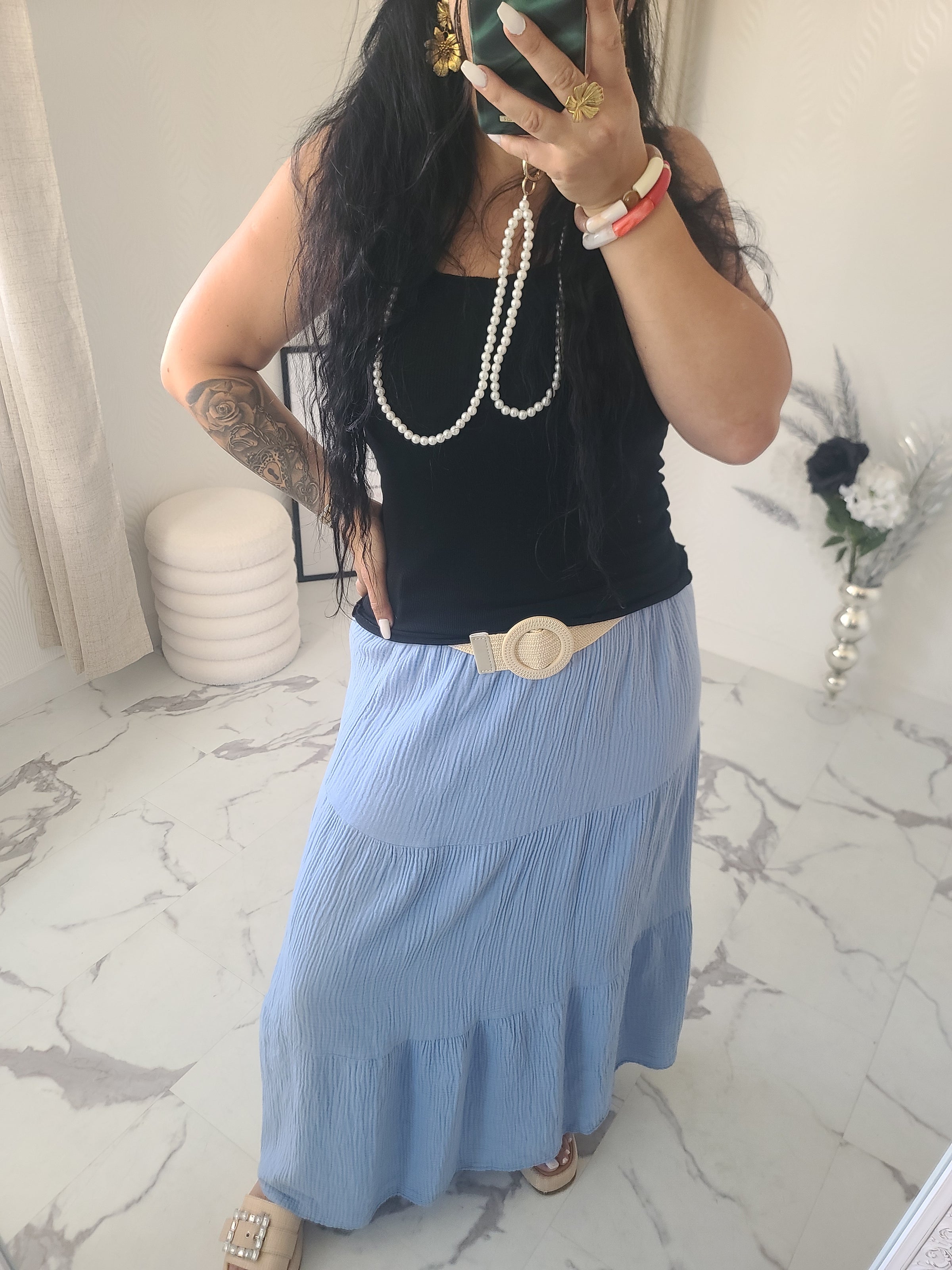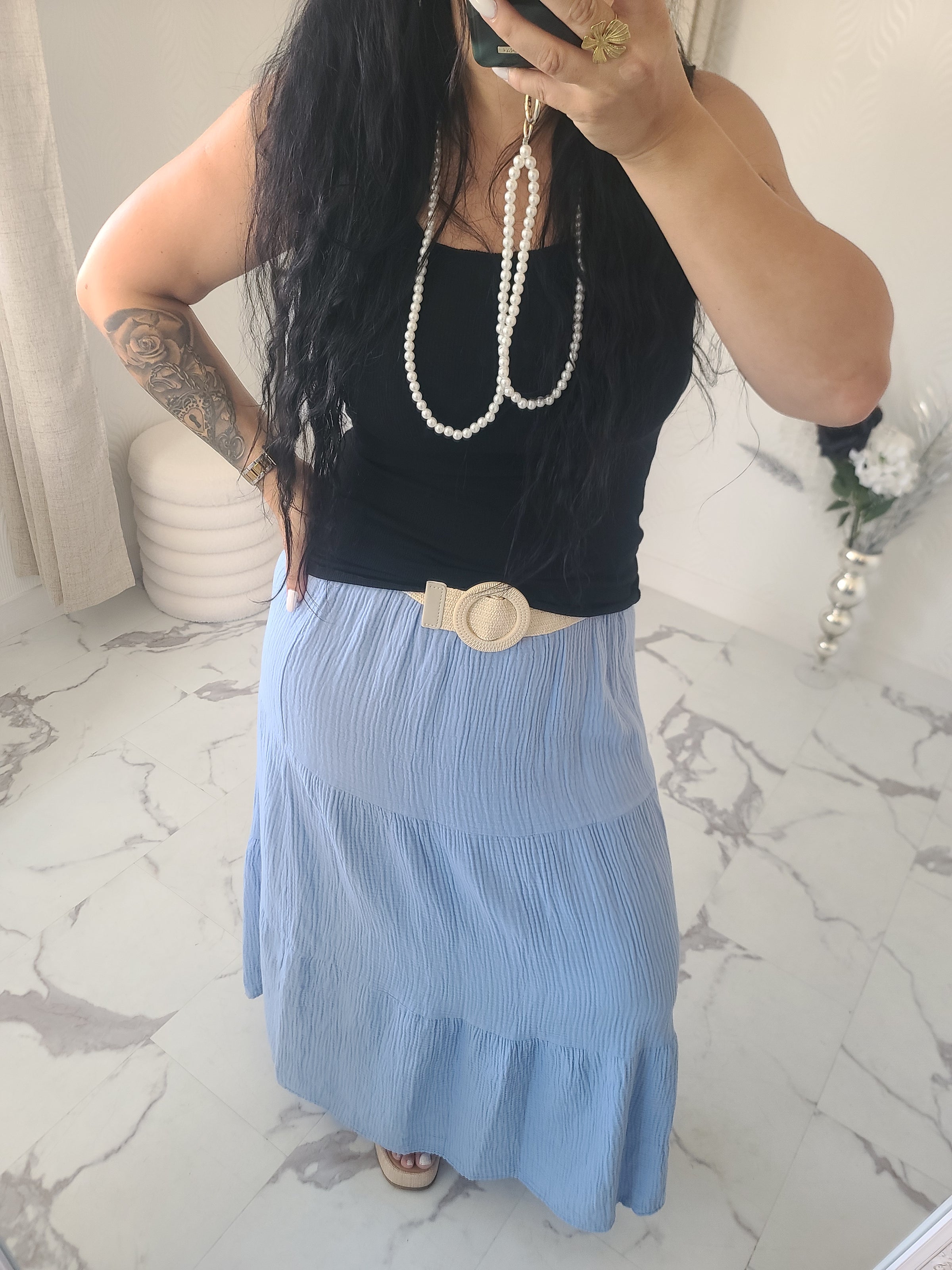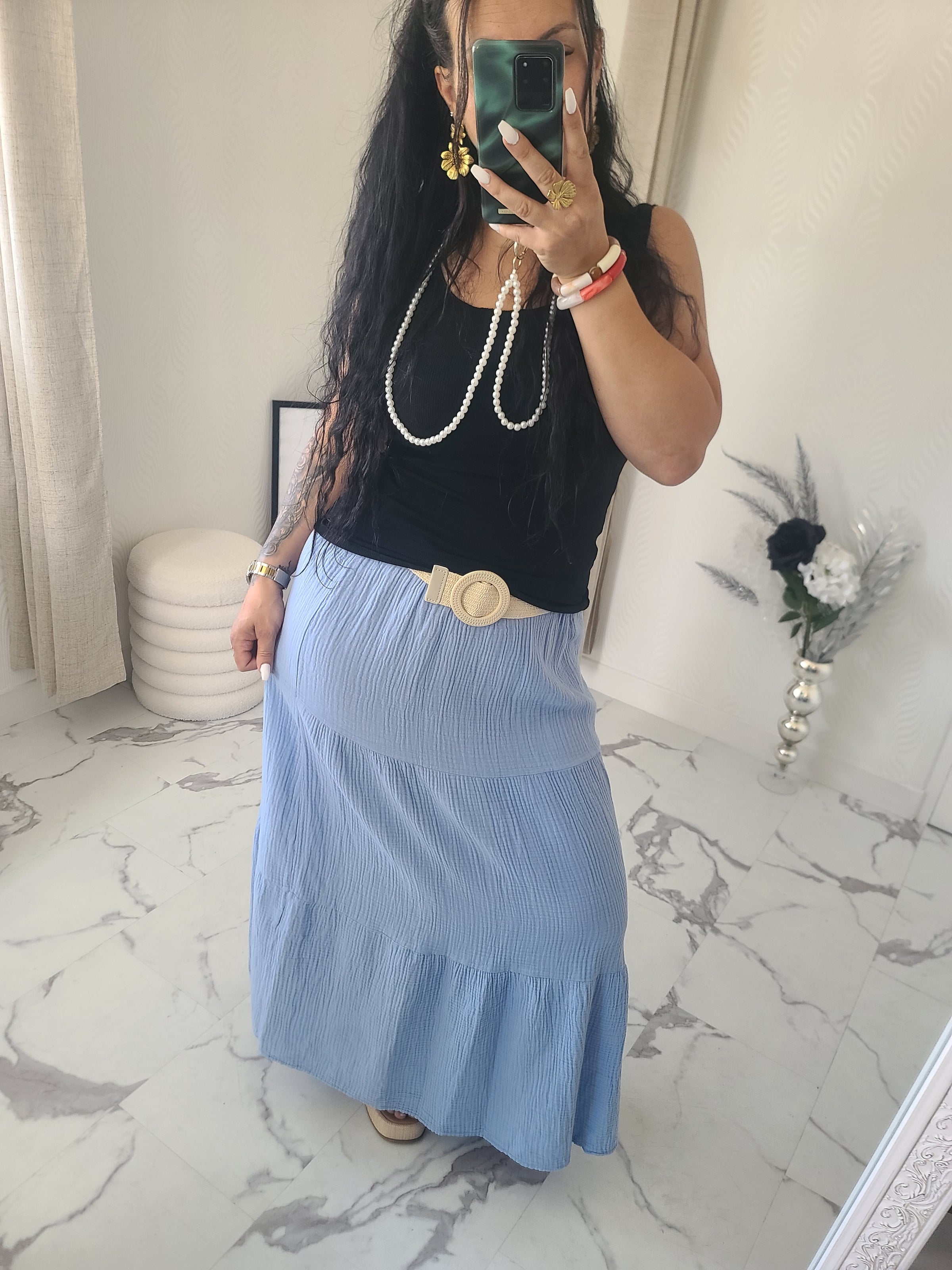 Jupe longue en gaze de coton, vendue avec la ceinture!