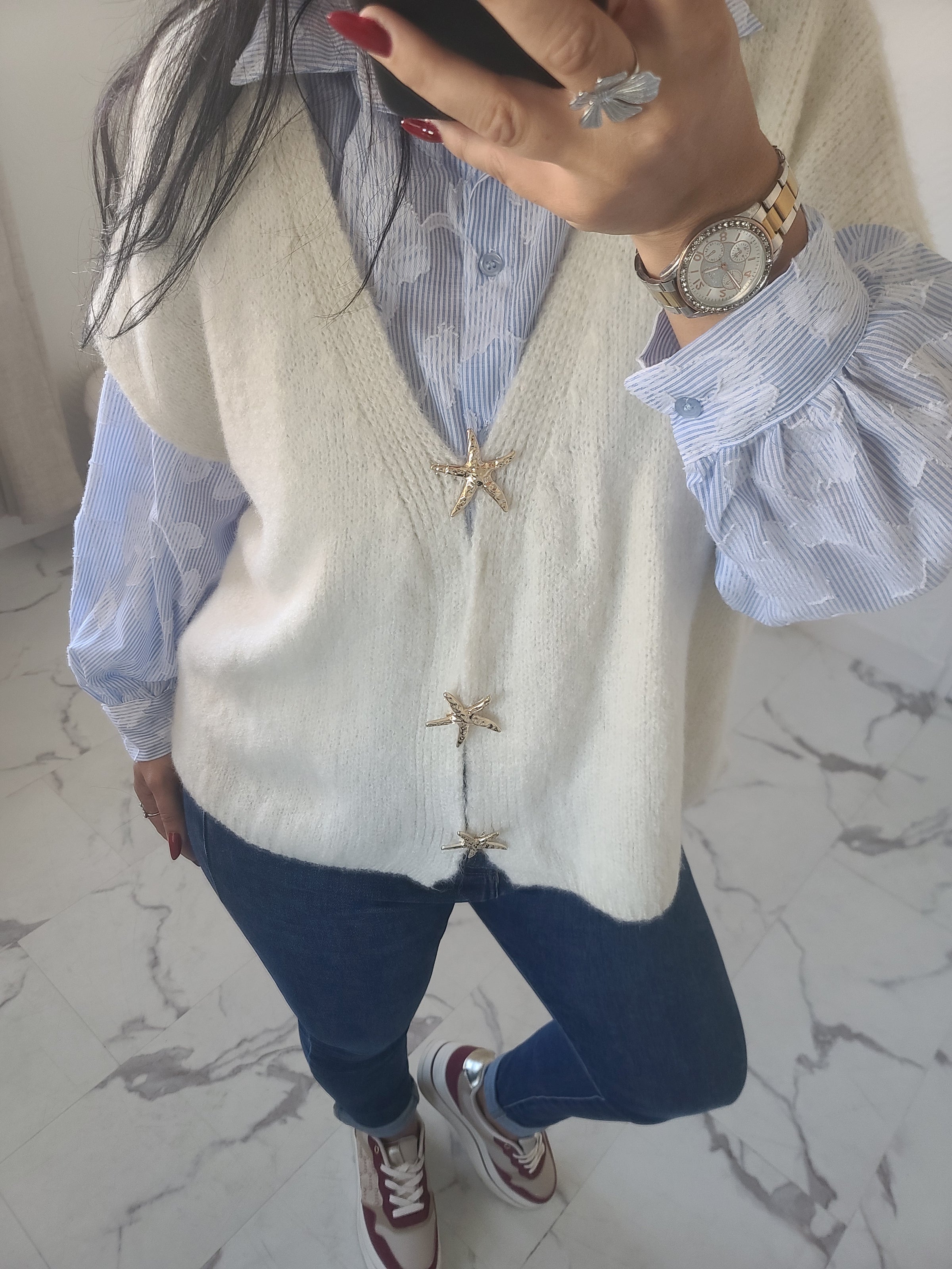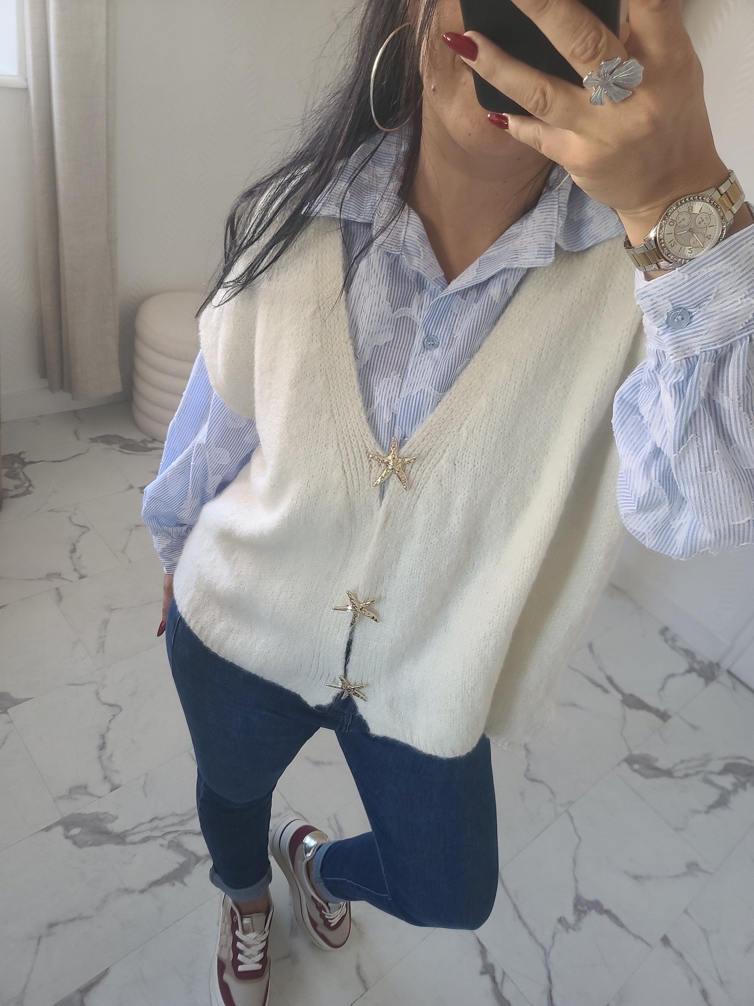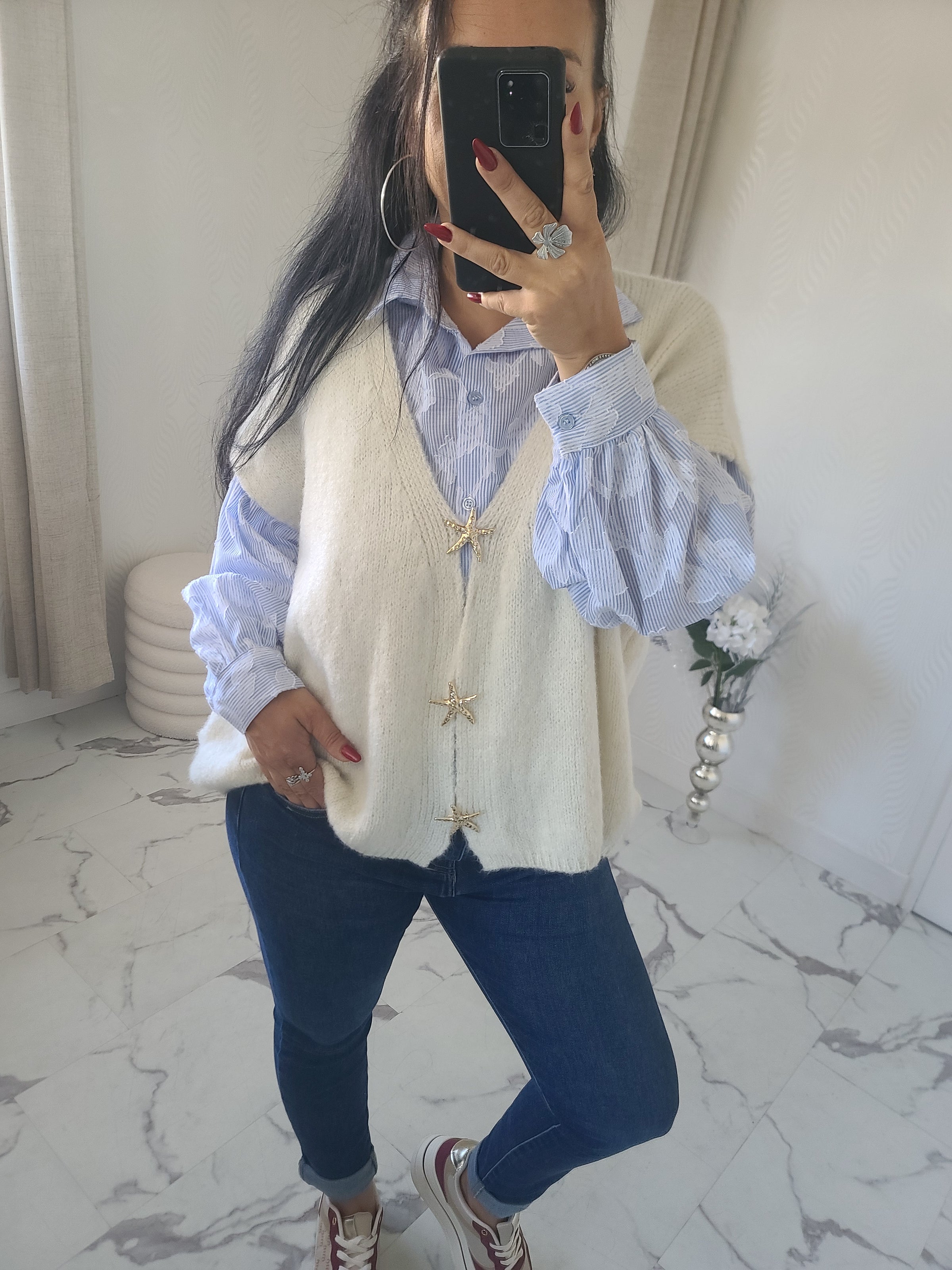 Gilet sans manches, avec les broches étoiles sur le devant, détail qui fait toute son originalité
