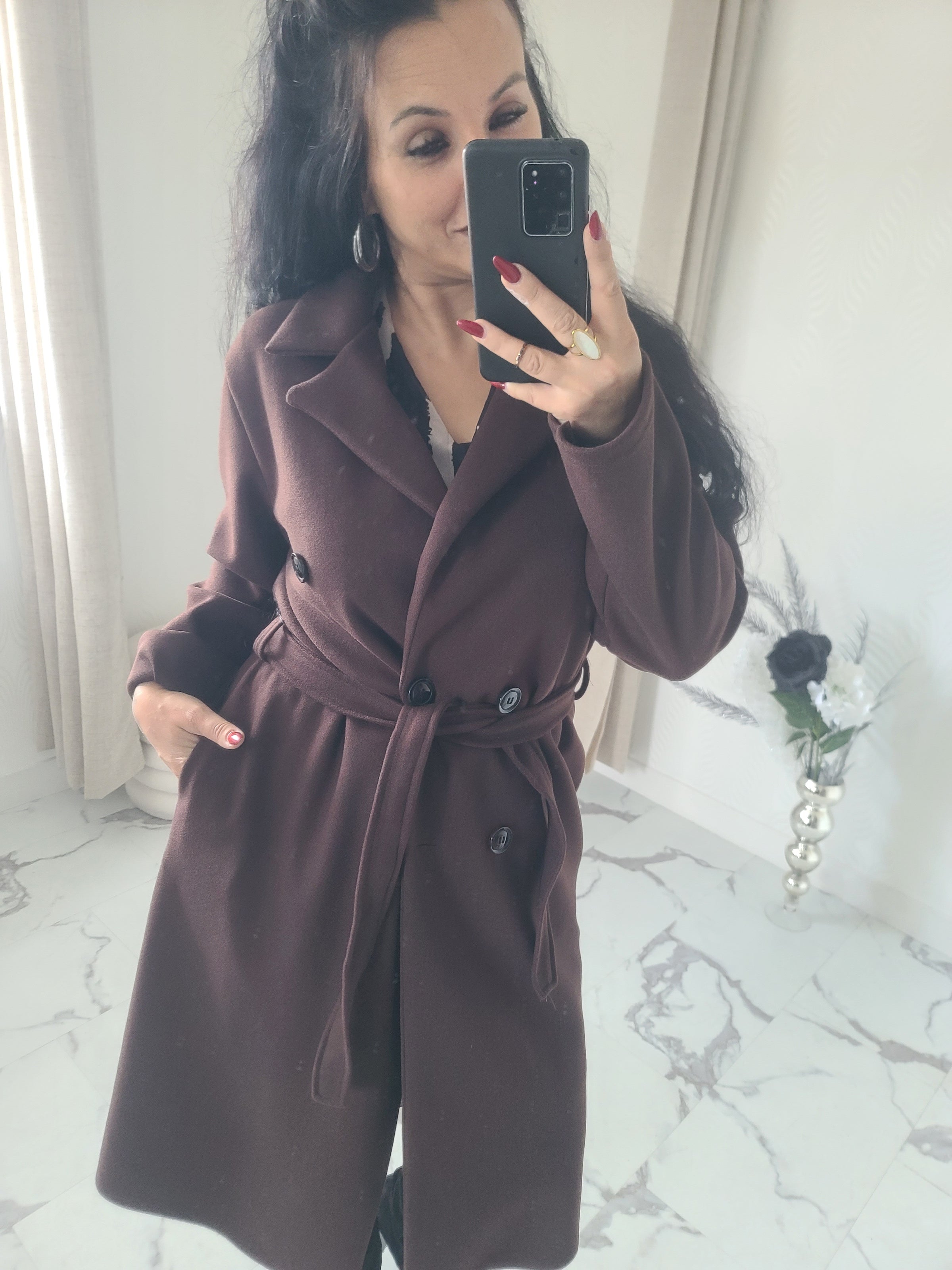 Magnifique manteau en drap de laine, avec poches et ceinture à la taille