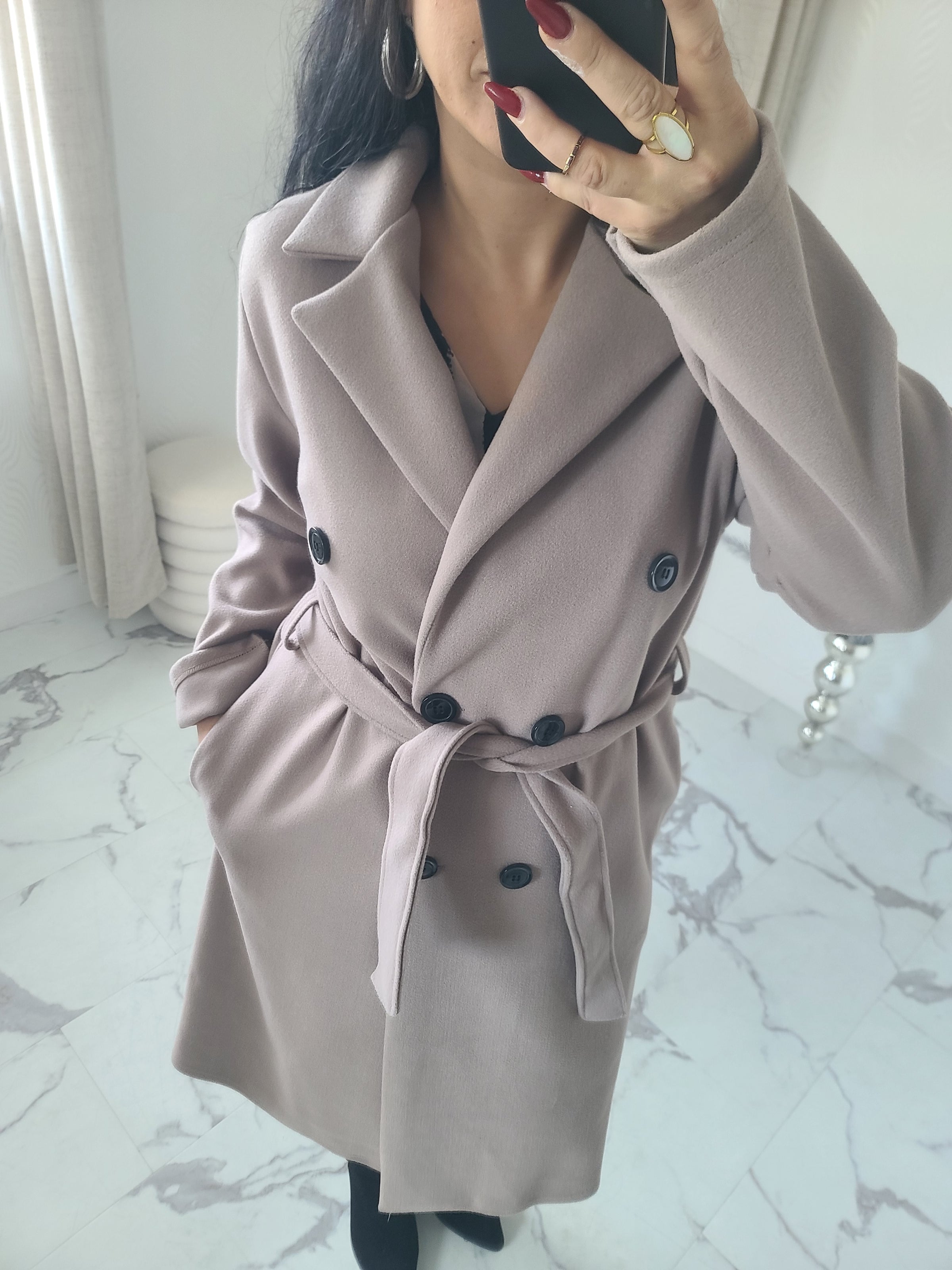 Magnifique manteau en drap de laine, avec poches et ceinture à la taille