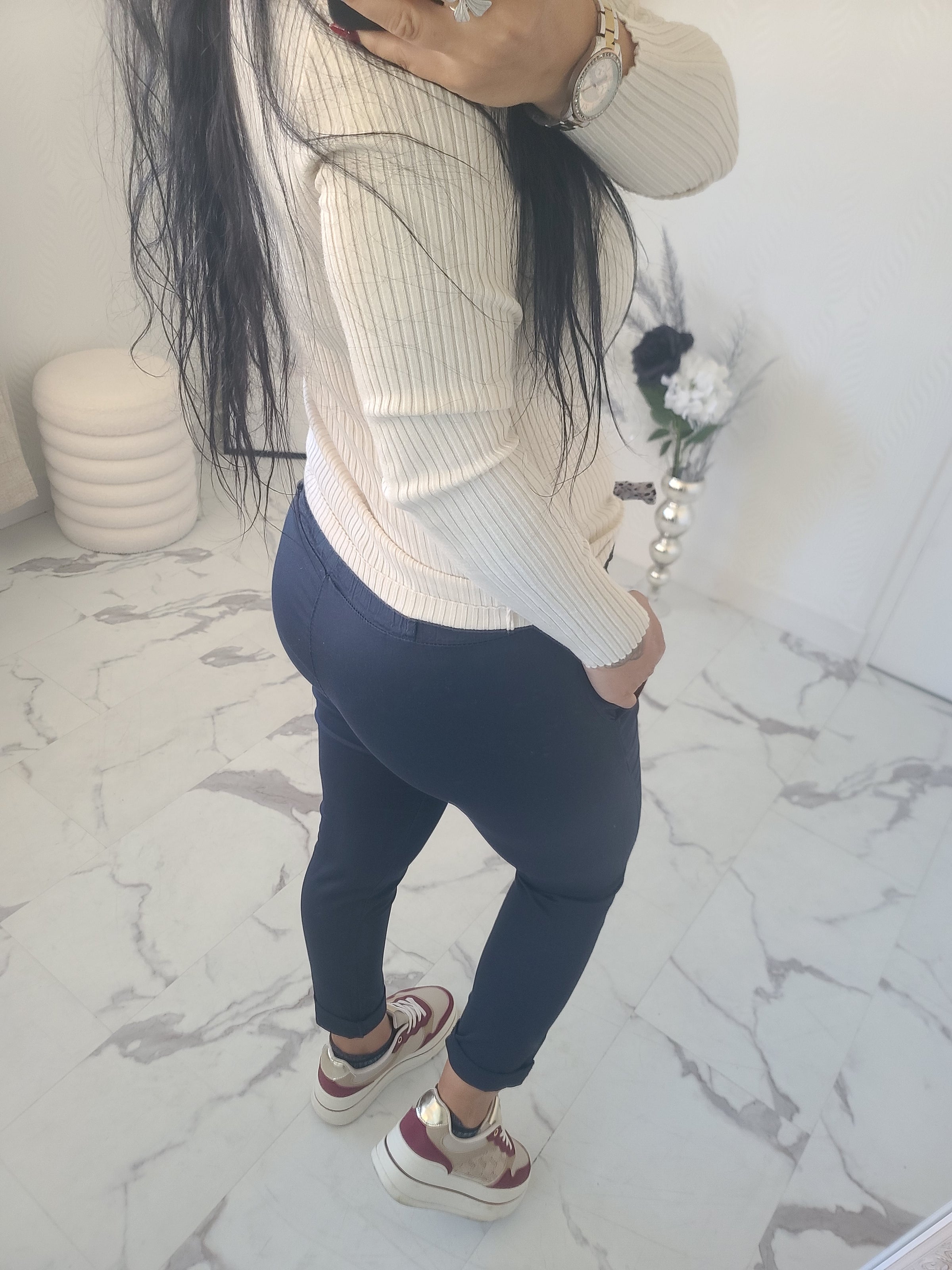 Découvrez le pantalon Chrisy en coton, avec la touche originale d’une ceinture inspirée des foulards. Ce pantalon est à la fois très confortable et léger, avec une coupe tendance et une taille élastique sans fermeture éclair ni bouton. Il est doté de 2 poches à l’avant.