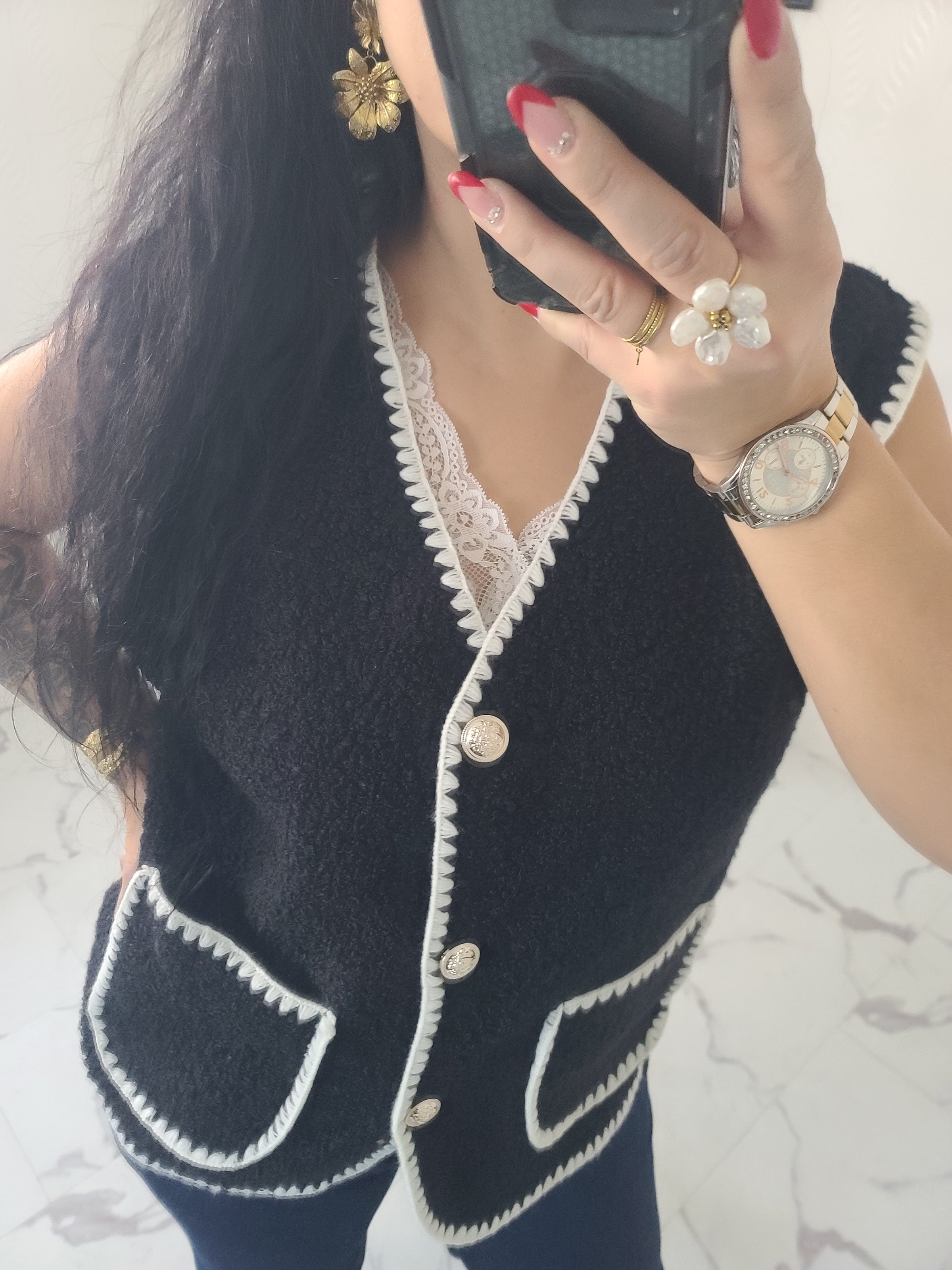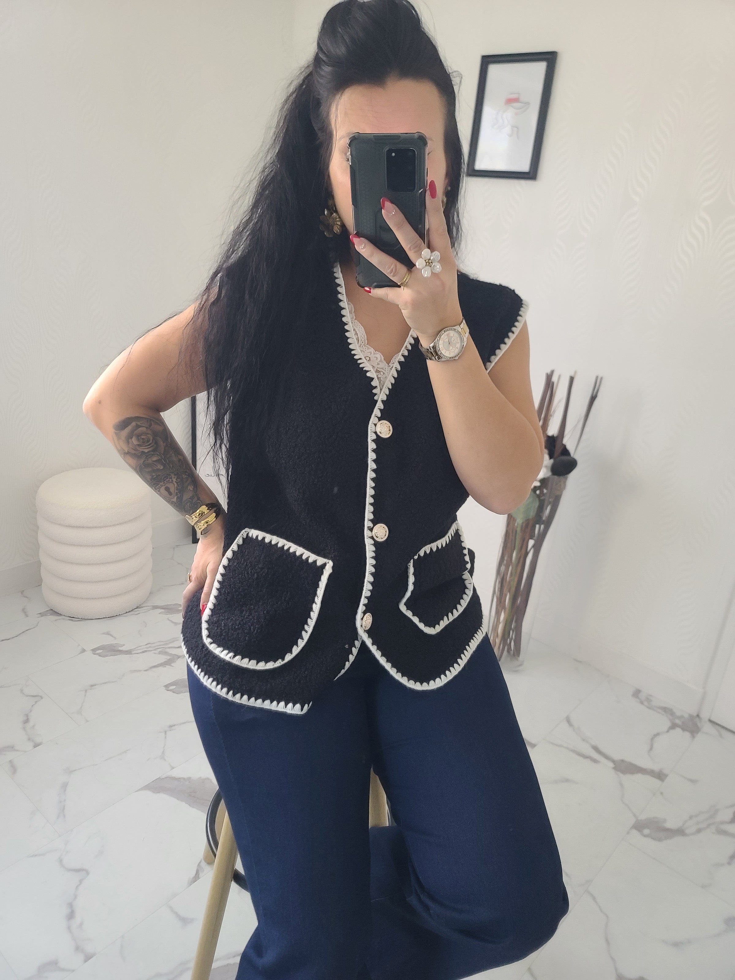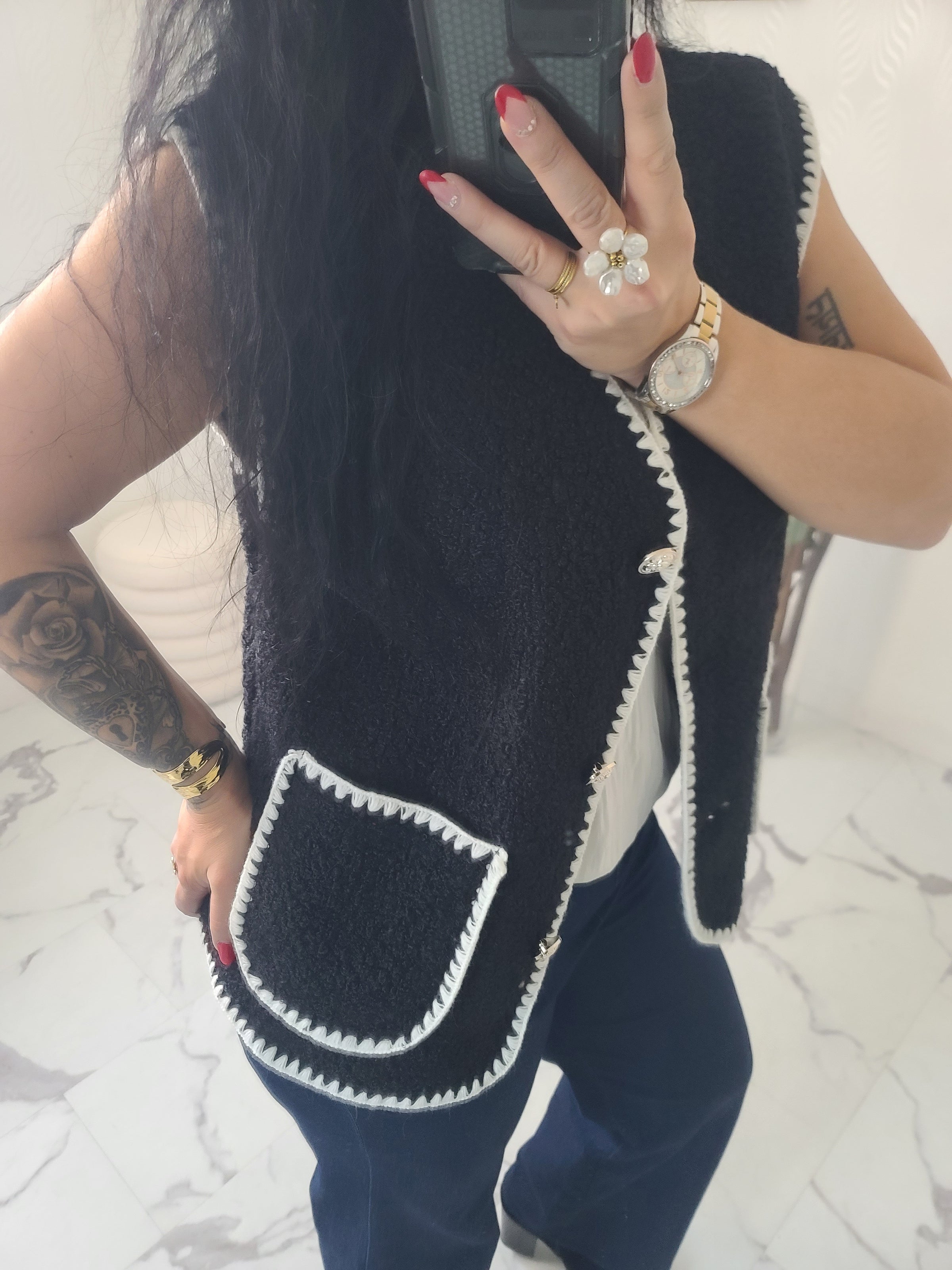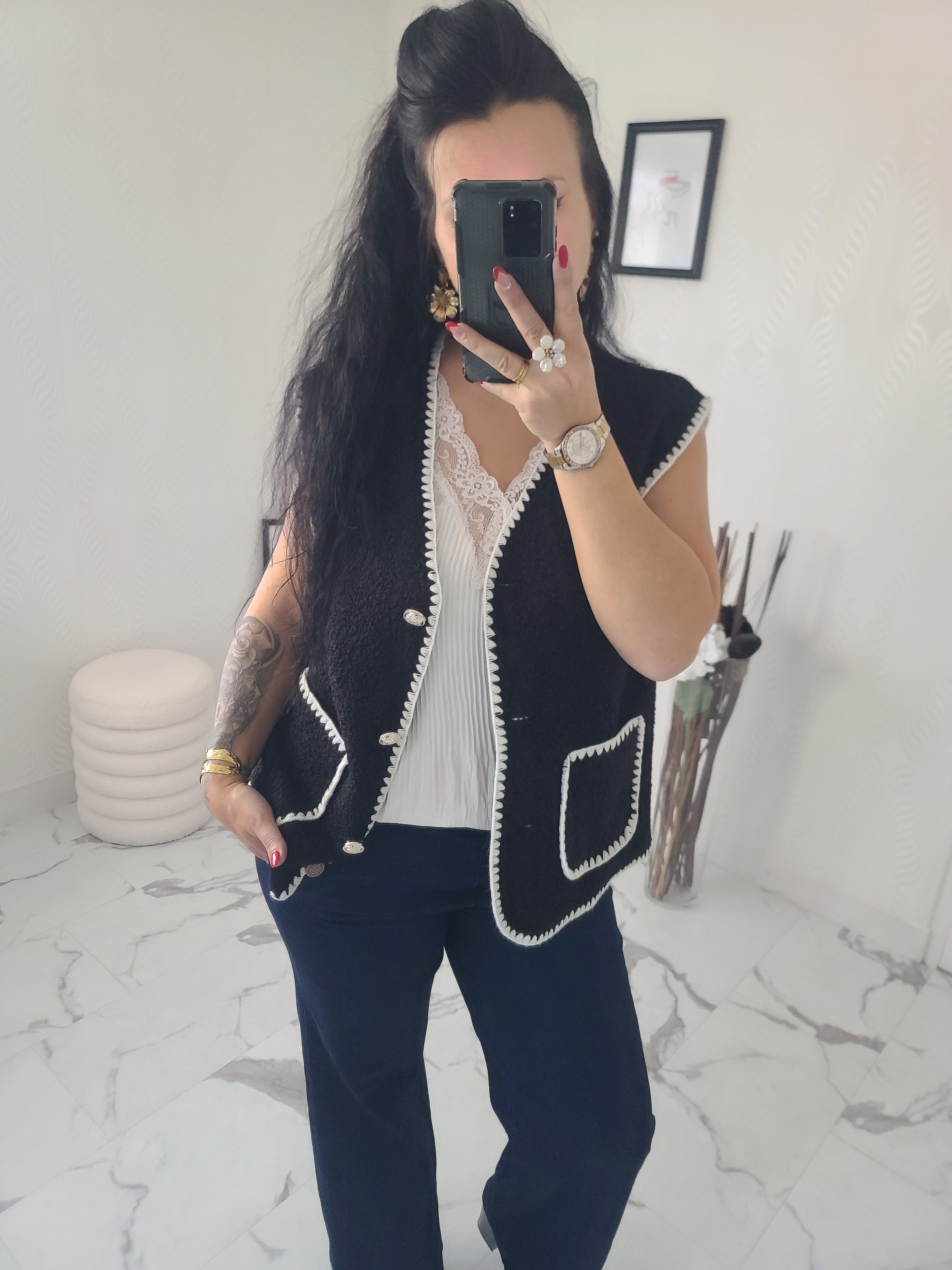 Gilet sans manches avec poches et boutons dorés bordures contrastantes