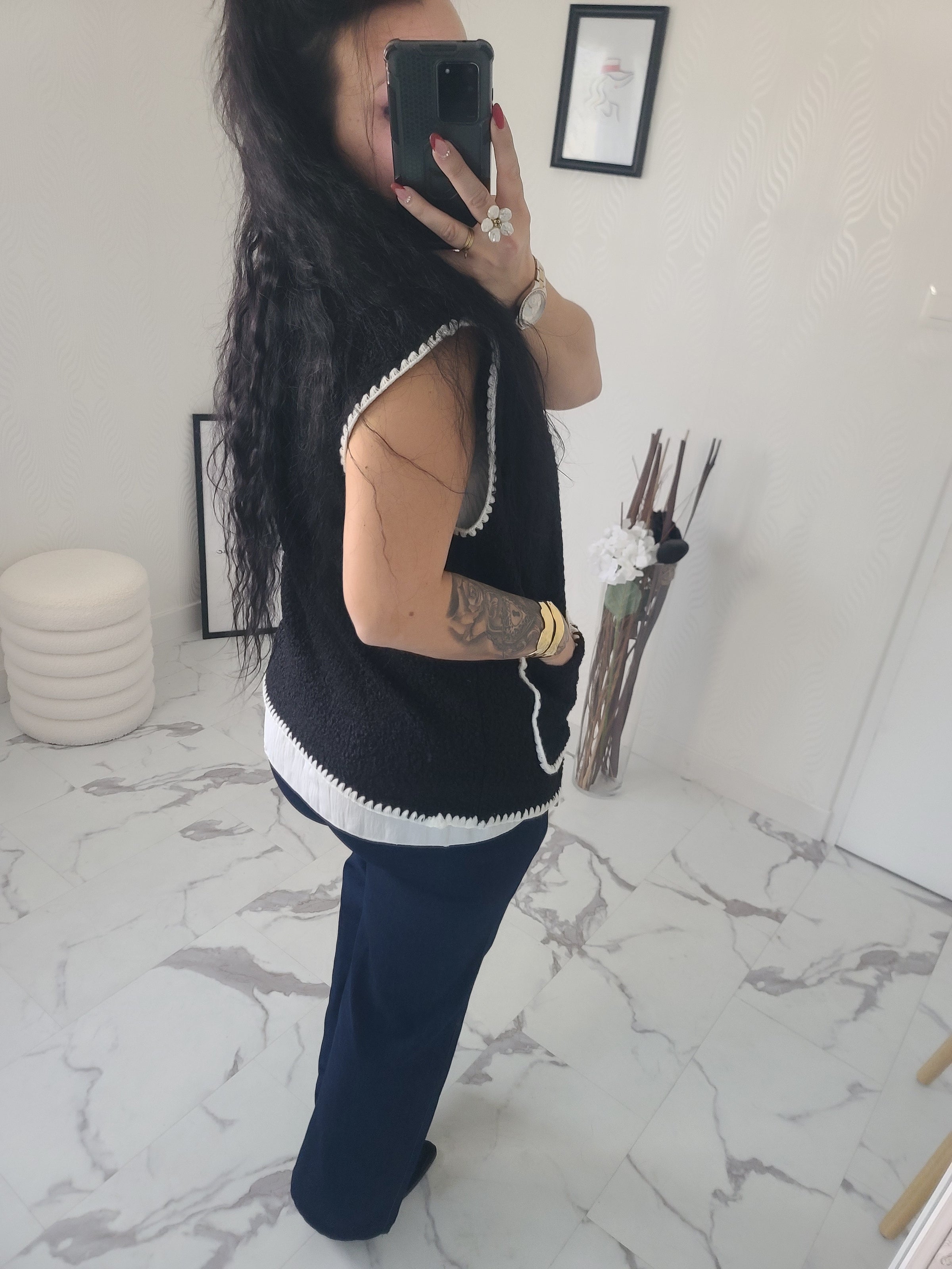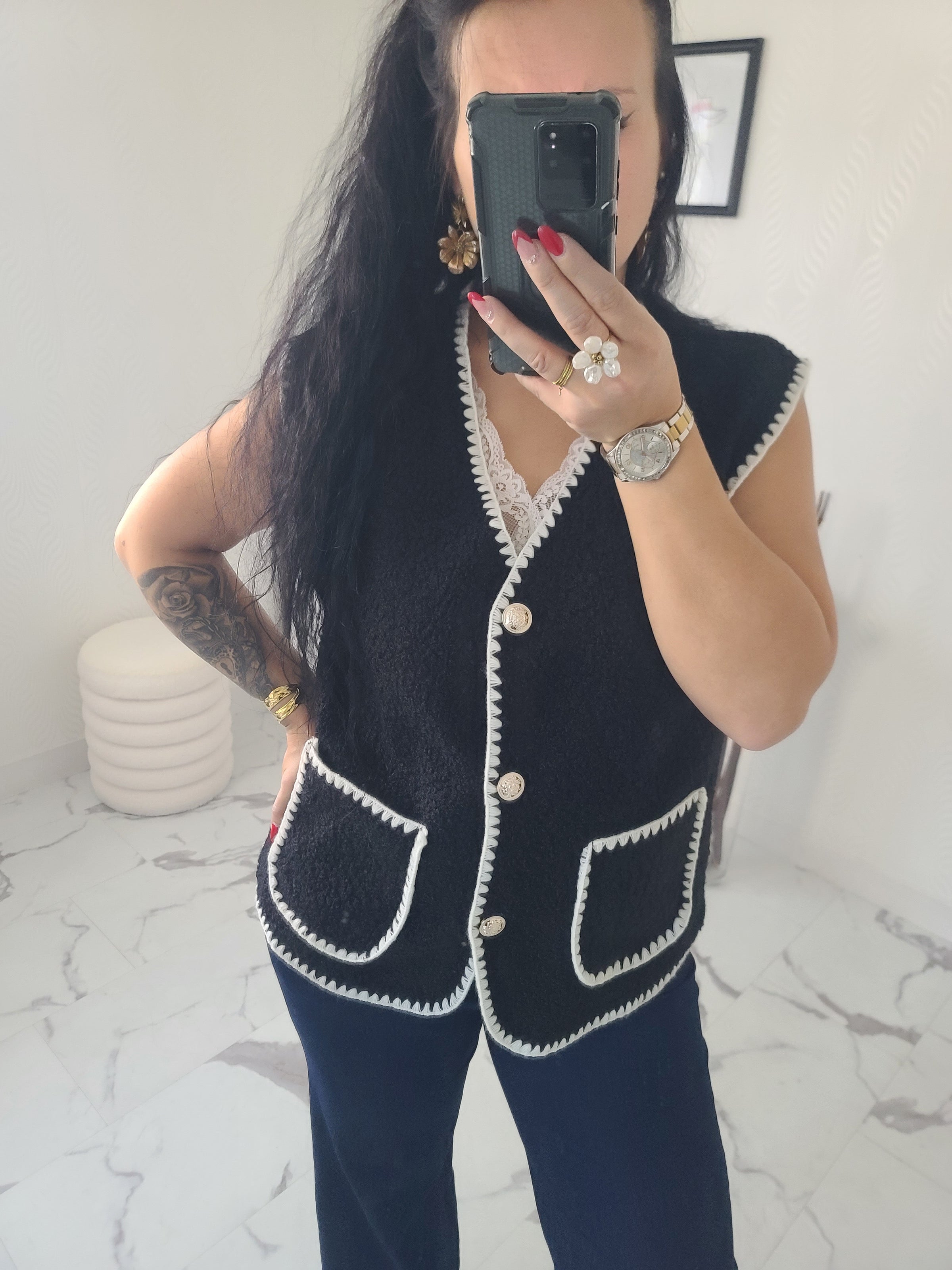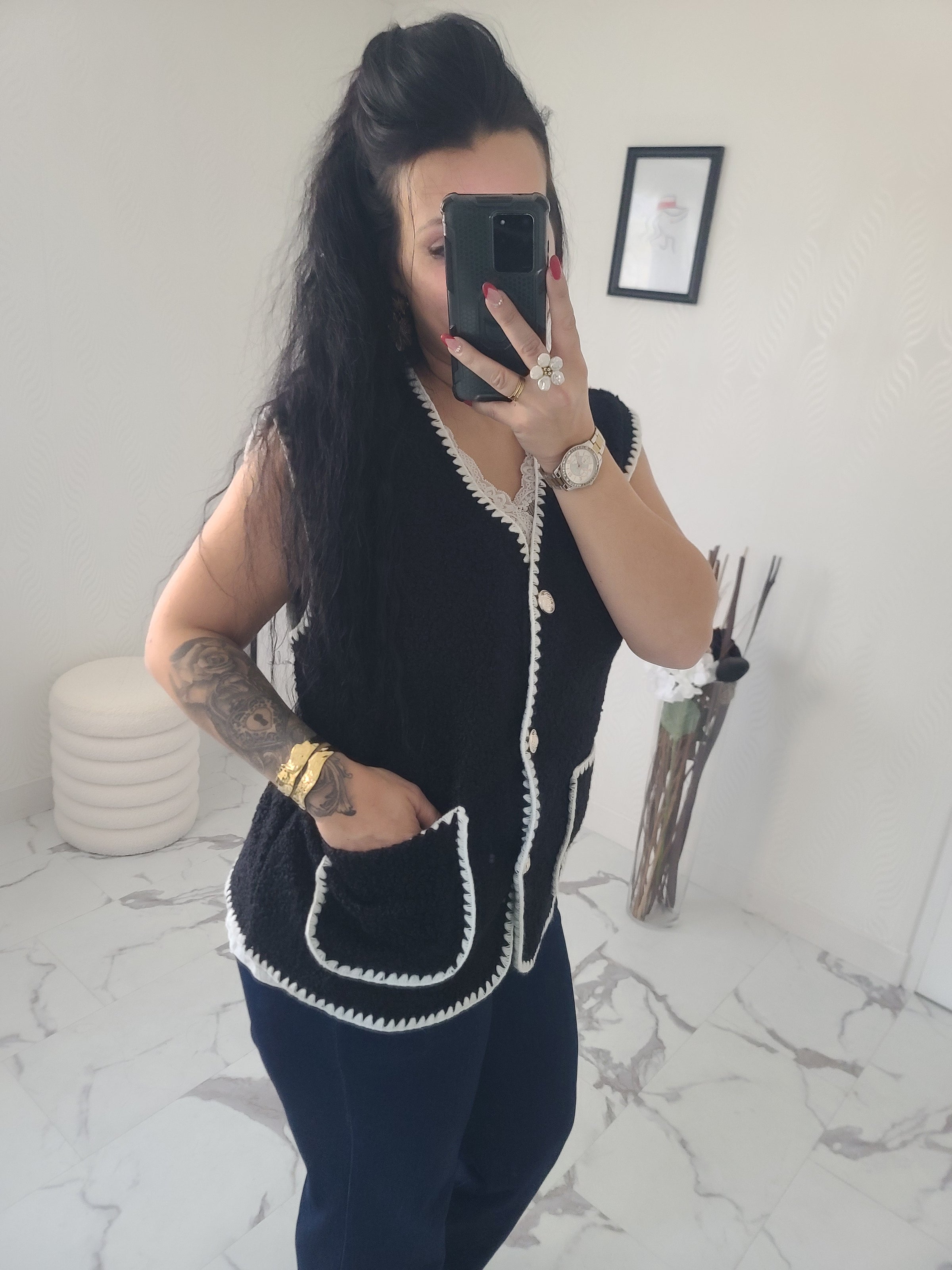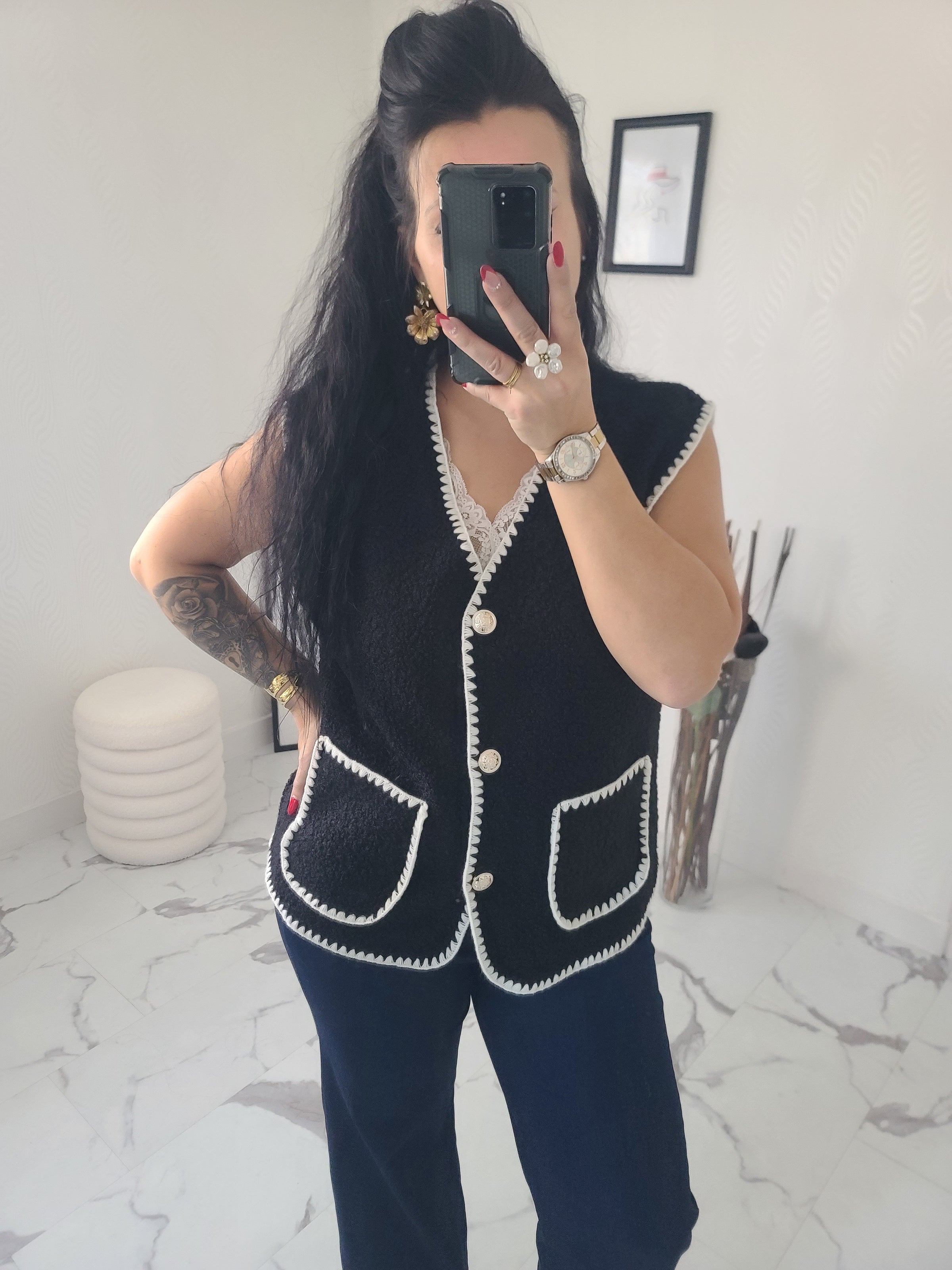 Gilet sans manches avec poches et boutons dorés bordures contrastantes