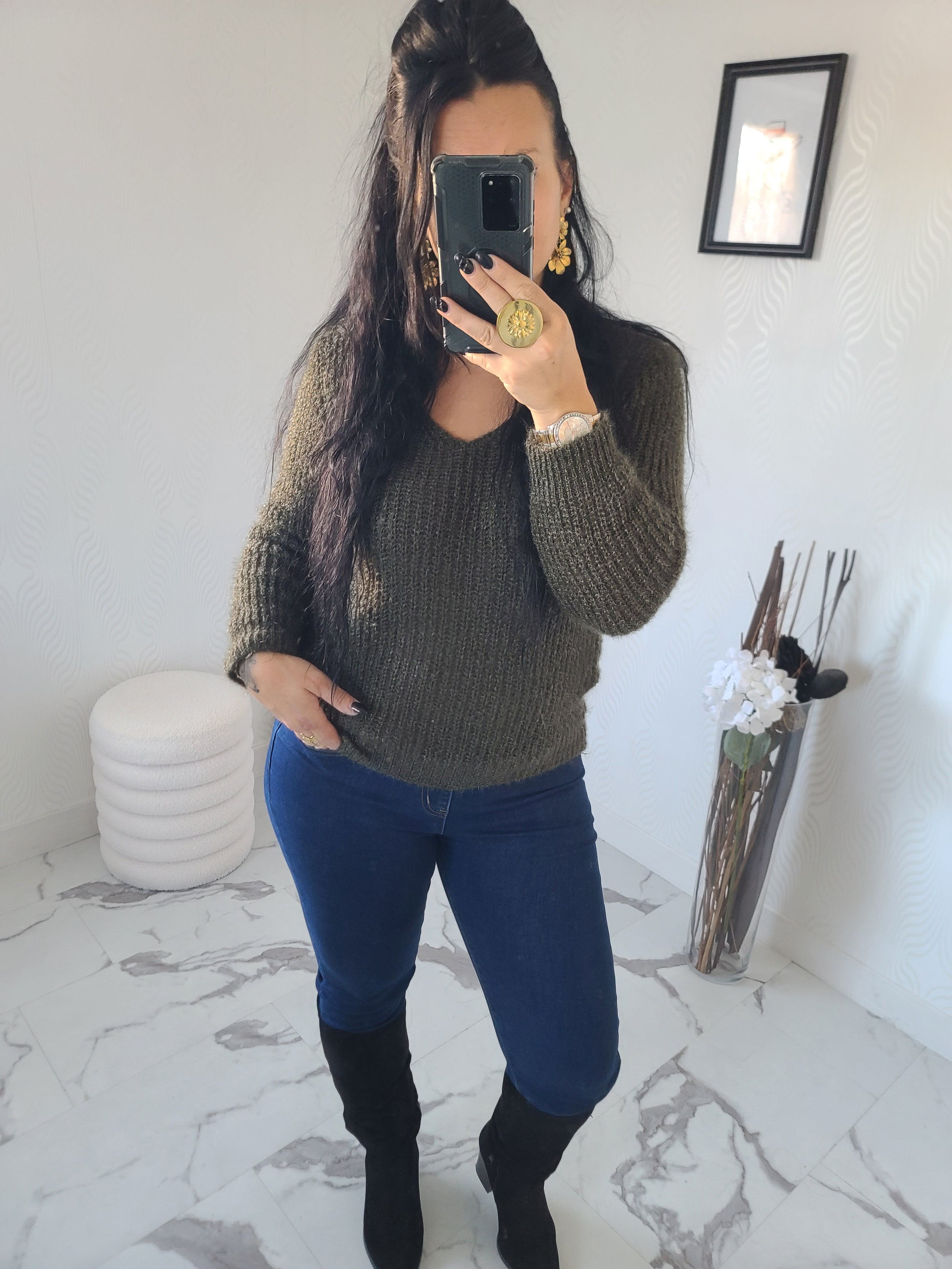 Pull CAMERON en maille doux. La taille unique convient d'un 36 à un 44