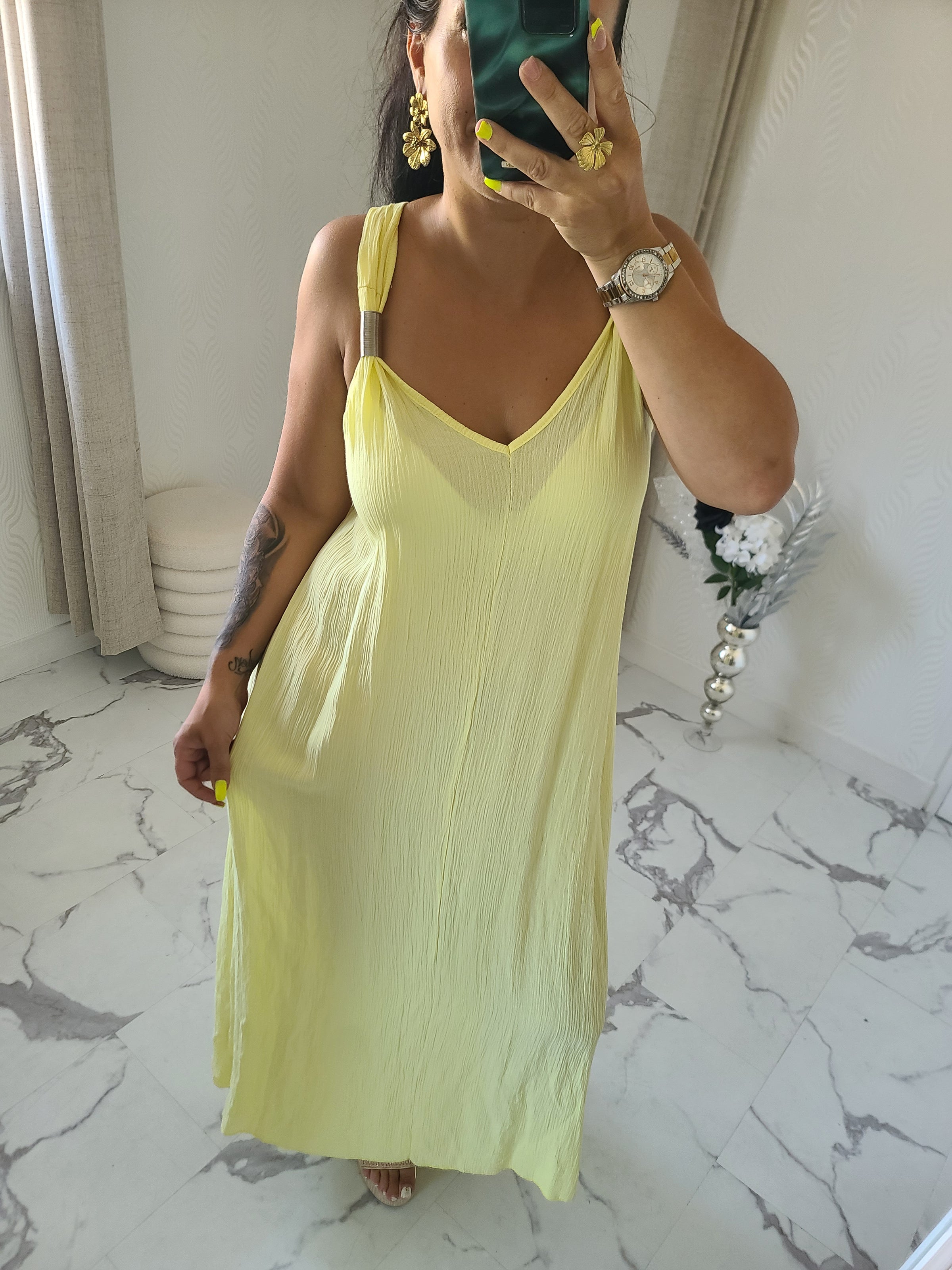 Robe longue uni avec détail argenté  qui vous permet d'ajuster la largeur des bretelles