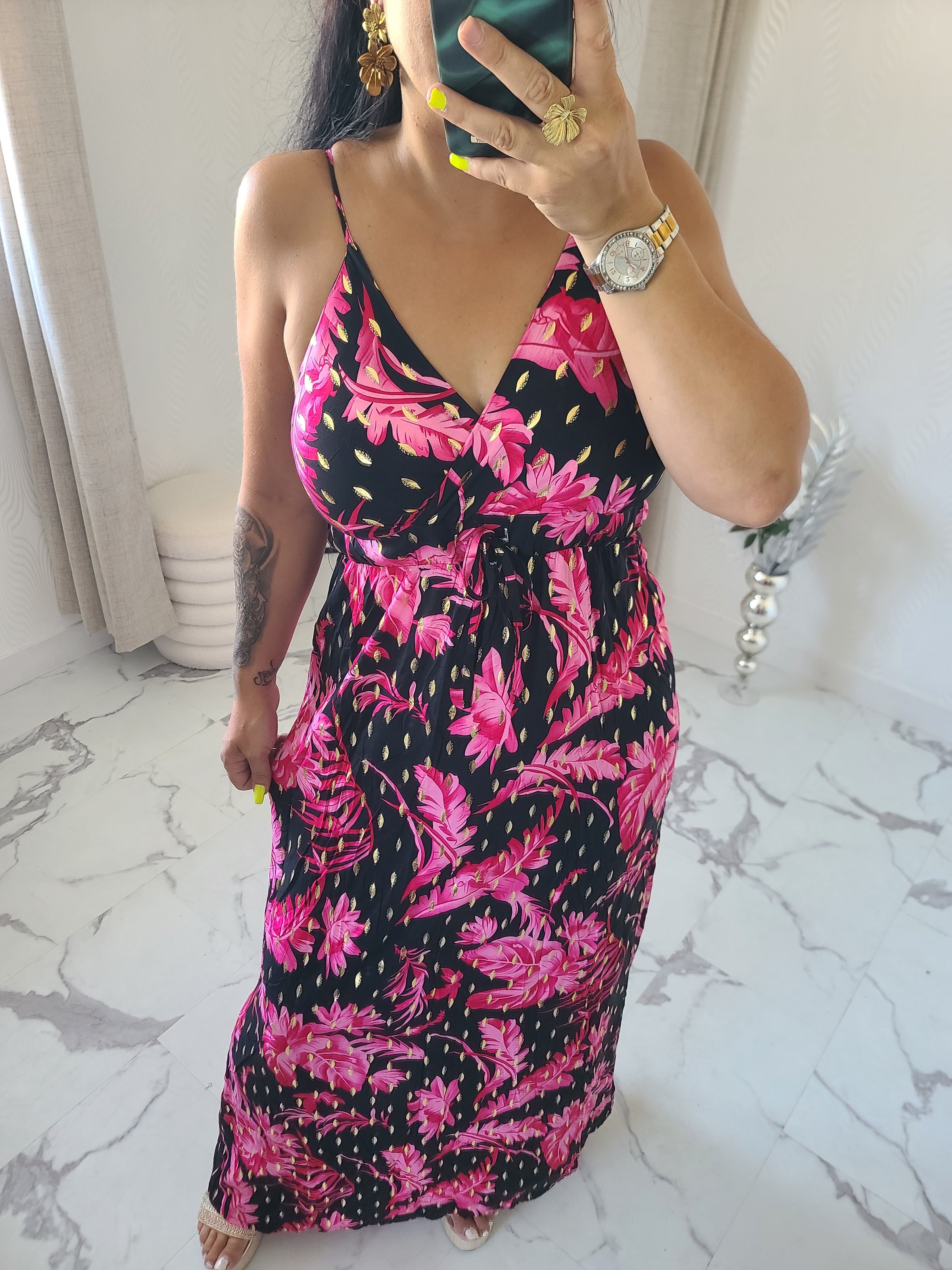 Robe longue imprimée avec bretelles réglables