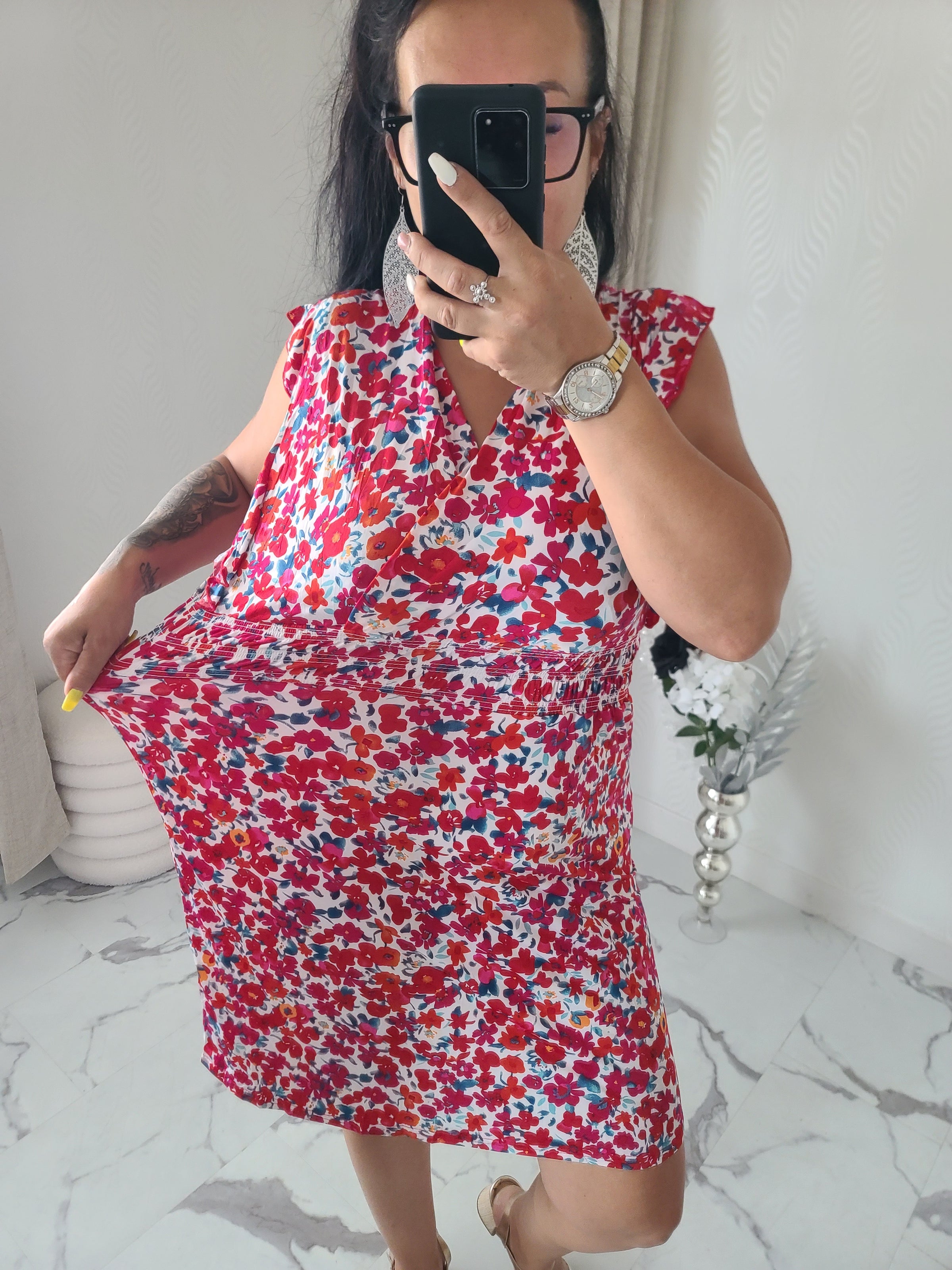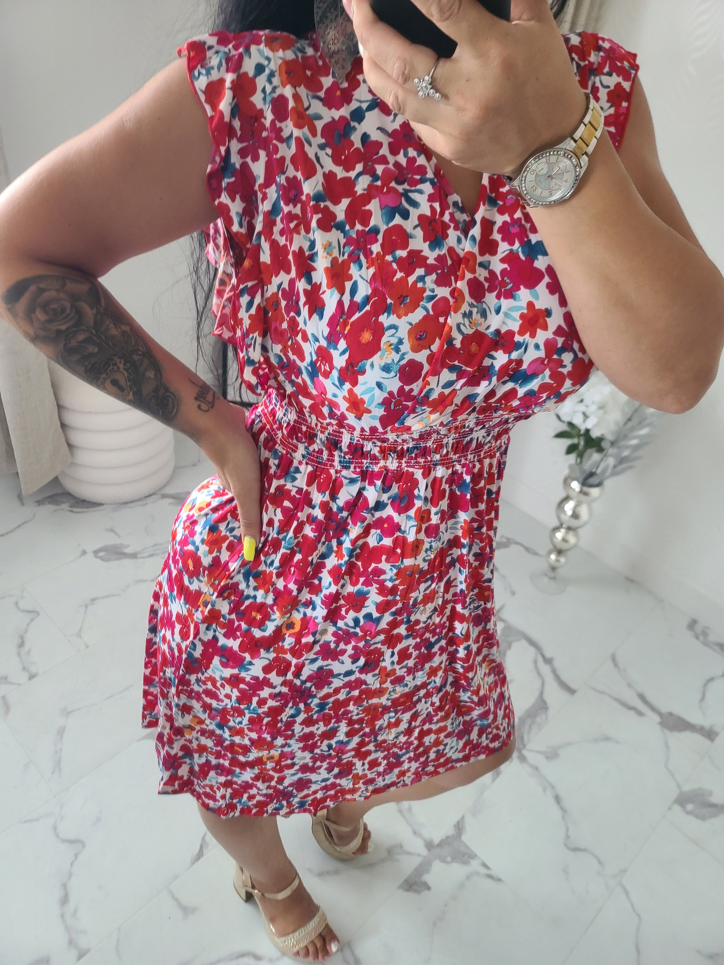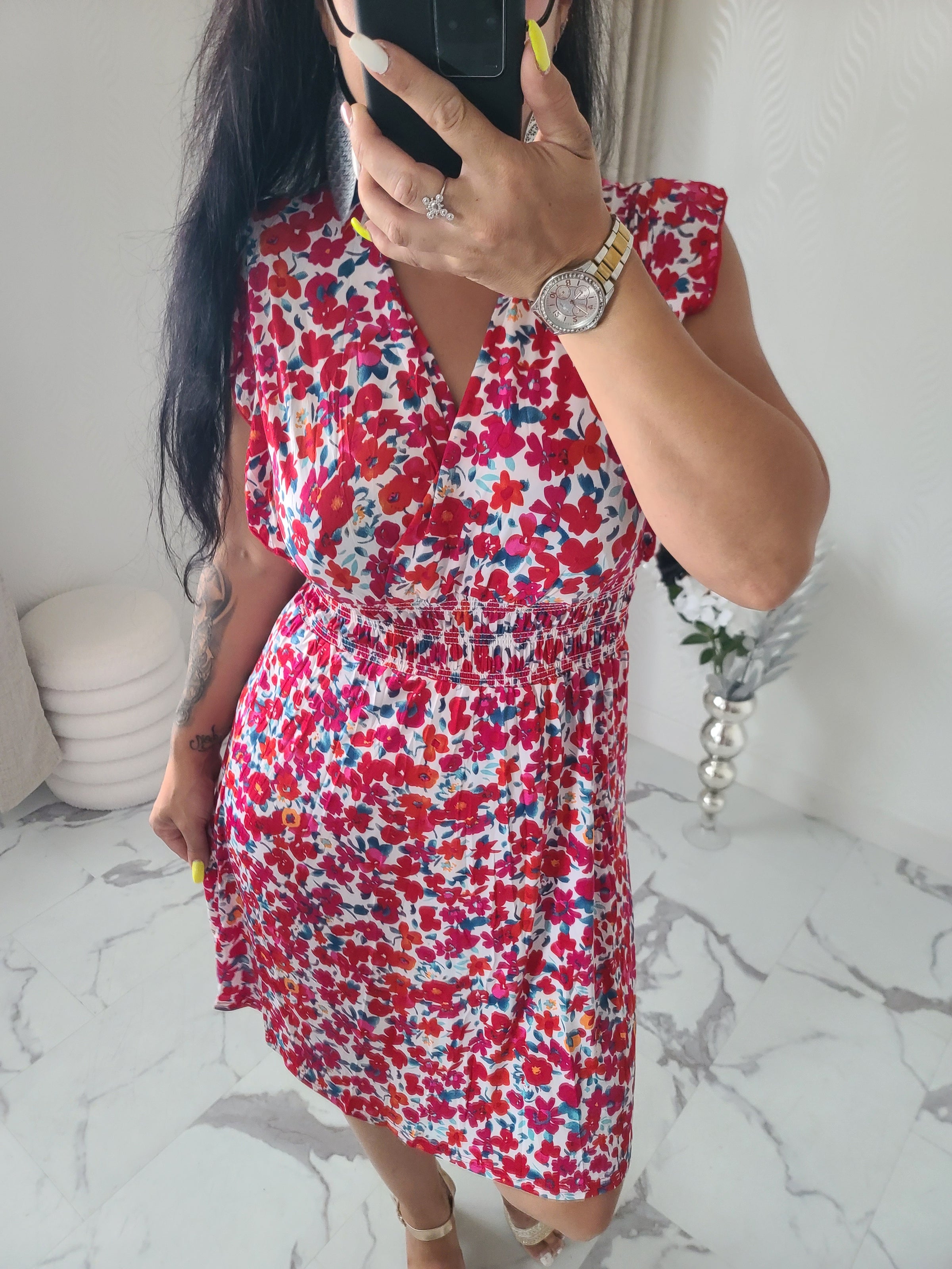 Robe courte fleurie, taille magique