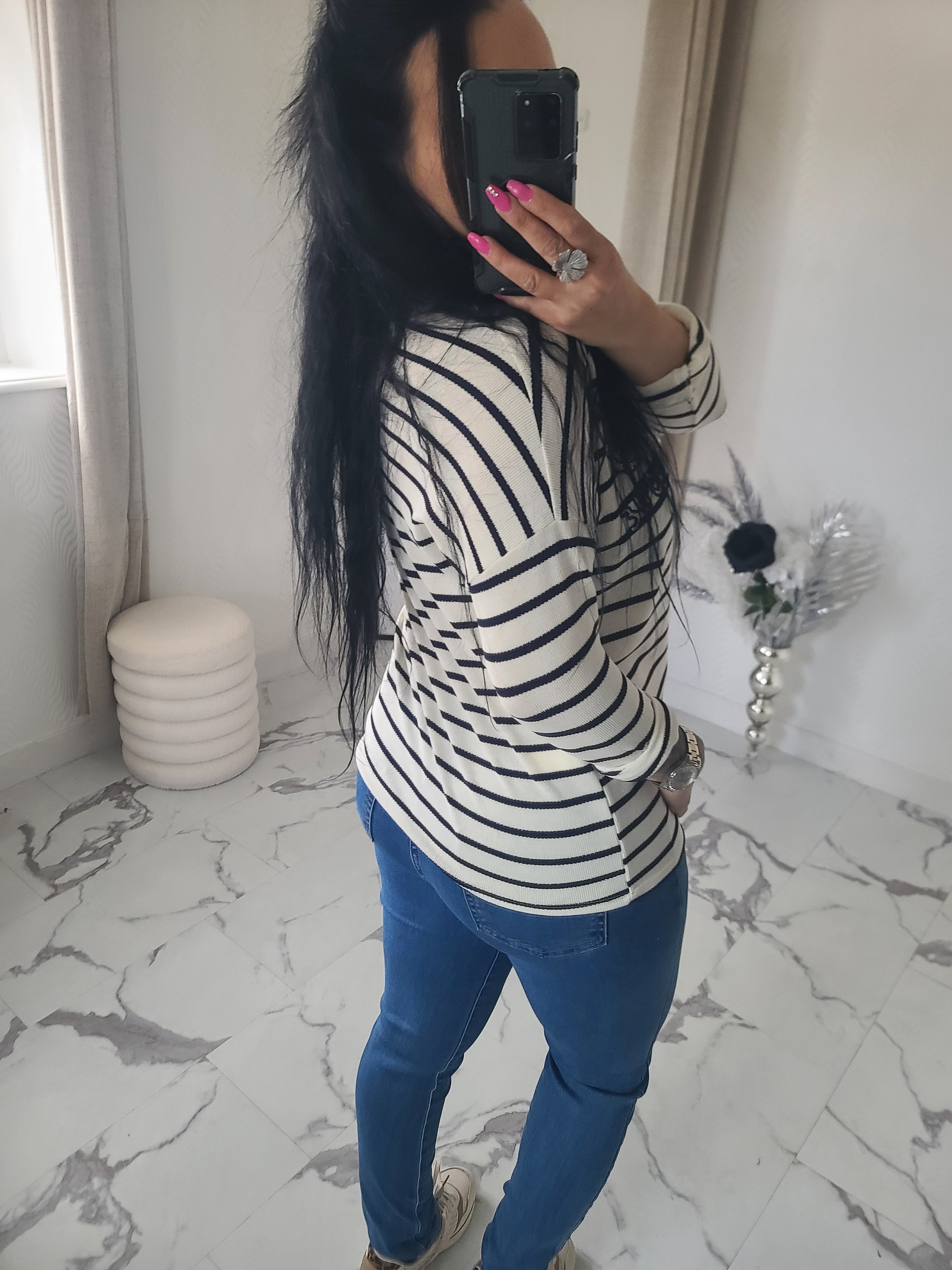 T-shirt rayé, manches longues, composition riche et extensible